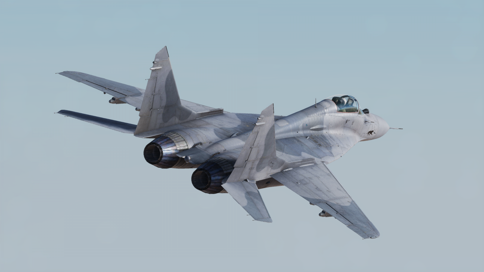 Don Kirlin's airworthy MiG-29UB with its current camouflaged paint scheme, represented in-game with the MiG-29A. Available to the USAF Aggressor faction, use with bort 37 for maximum realism.