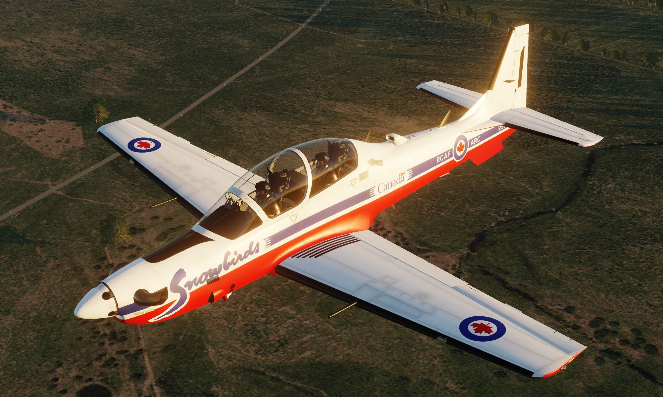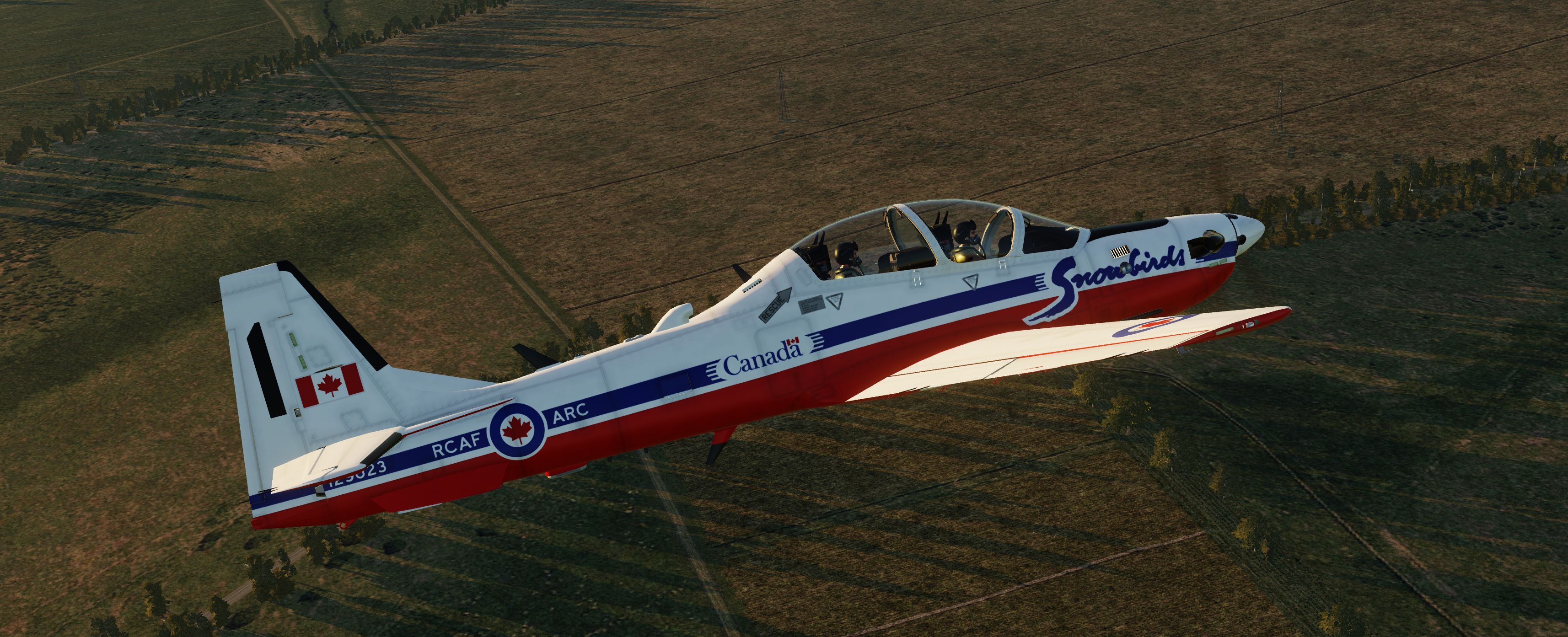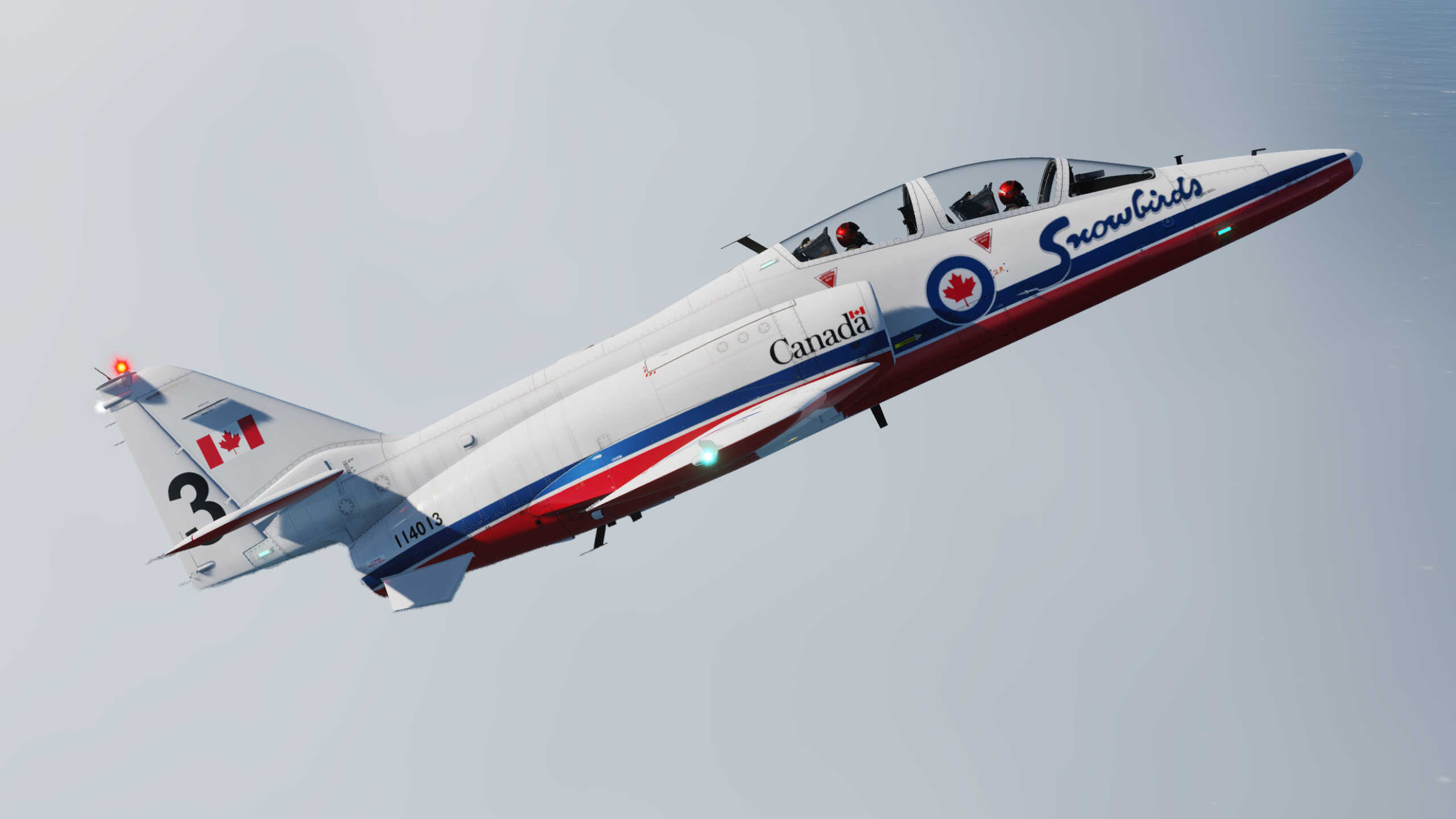A skin developed for the Virtual Snowbirds using the 2020 design of the Canadian Snowbirds Canadair CT-114 Tutor.  10 versions are included one with no tail number, and tail numbers 1-9.