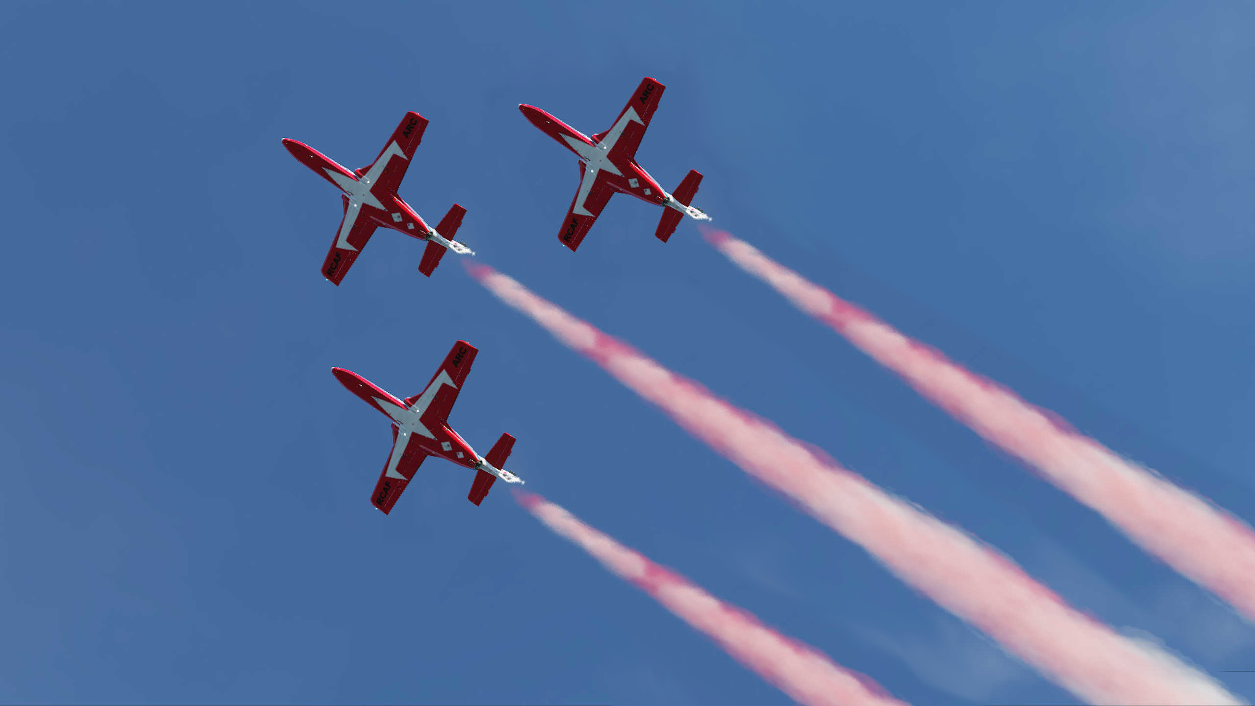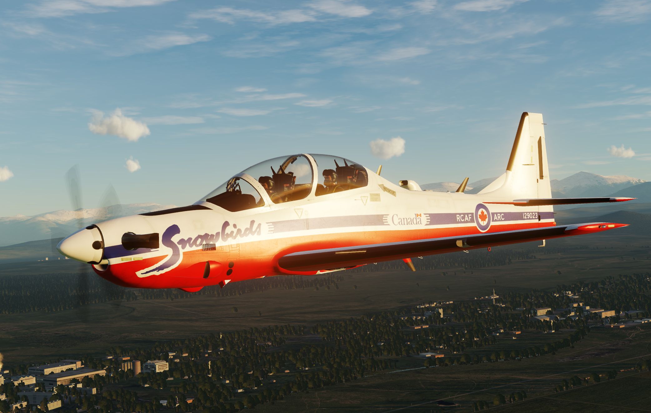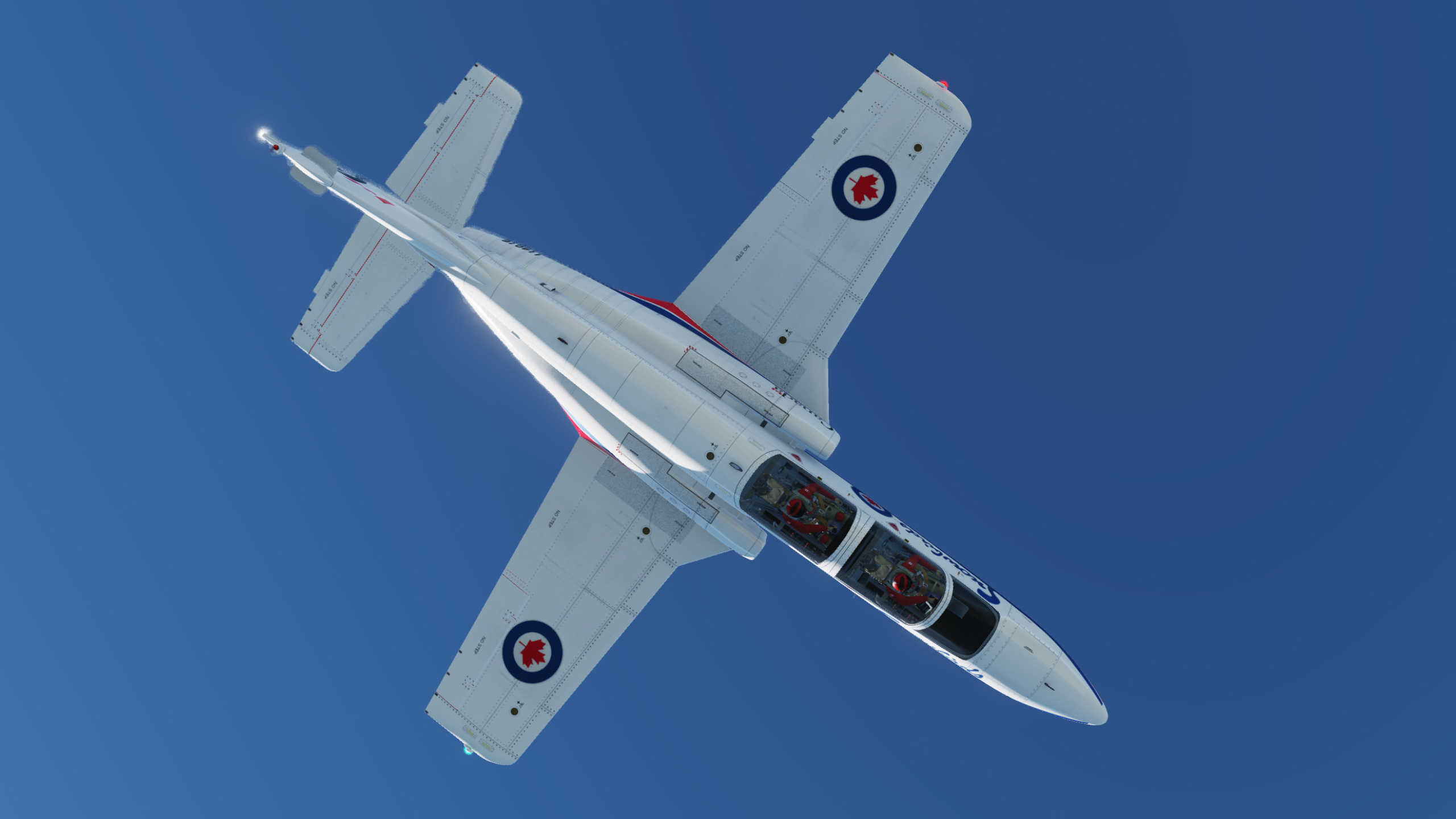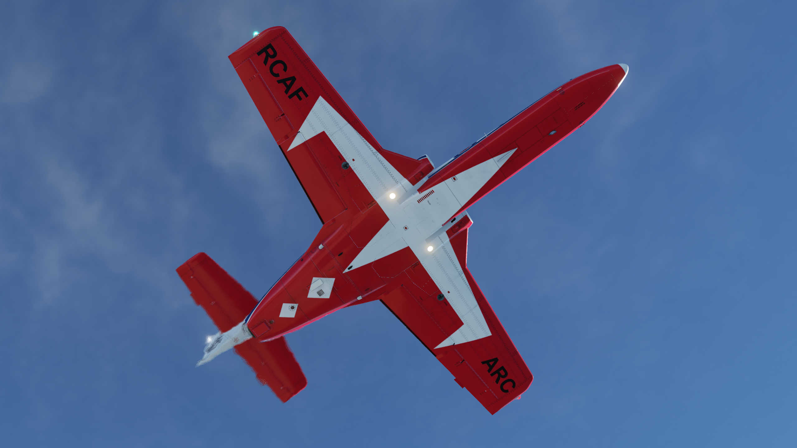 A skin developed for the Virtual Snowbirds using the 2020 design of the Canadian Snowbirds Canadair CT-114 Tutor.  10 versions are included one with no tail number, and tail numbers 1-9.