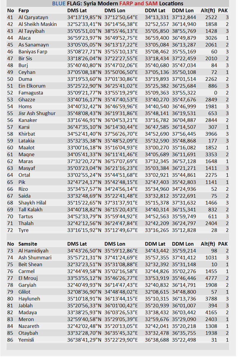 Custom kneeboard containing a list of all the capturable locations on the map except for the carriers and FOBs since their locations are constantly changing.