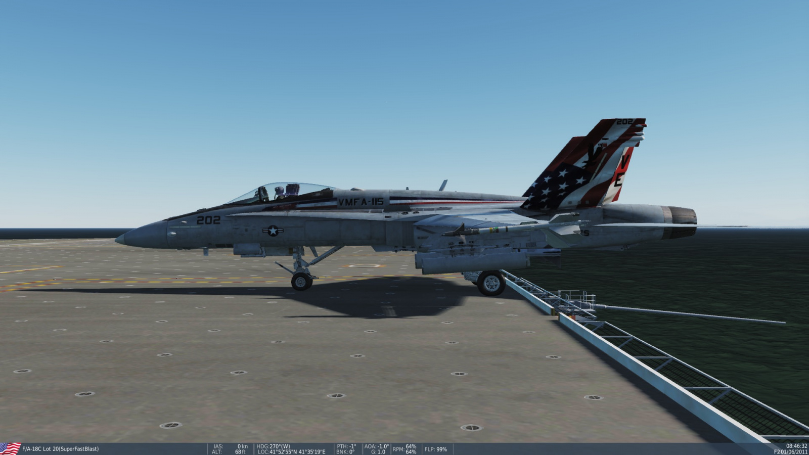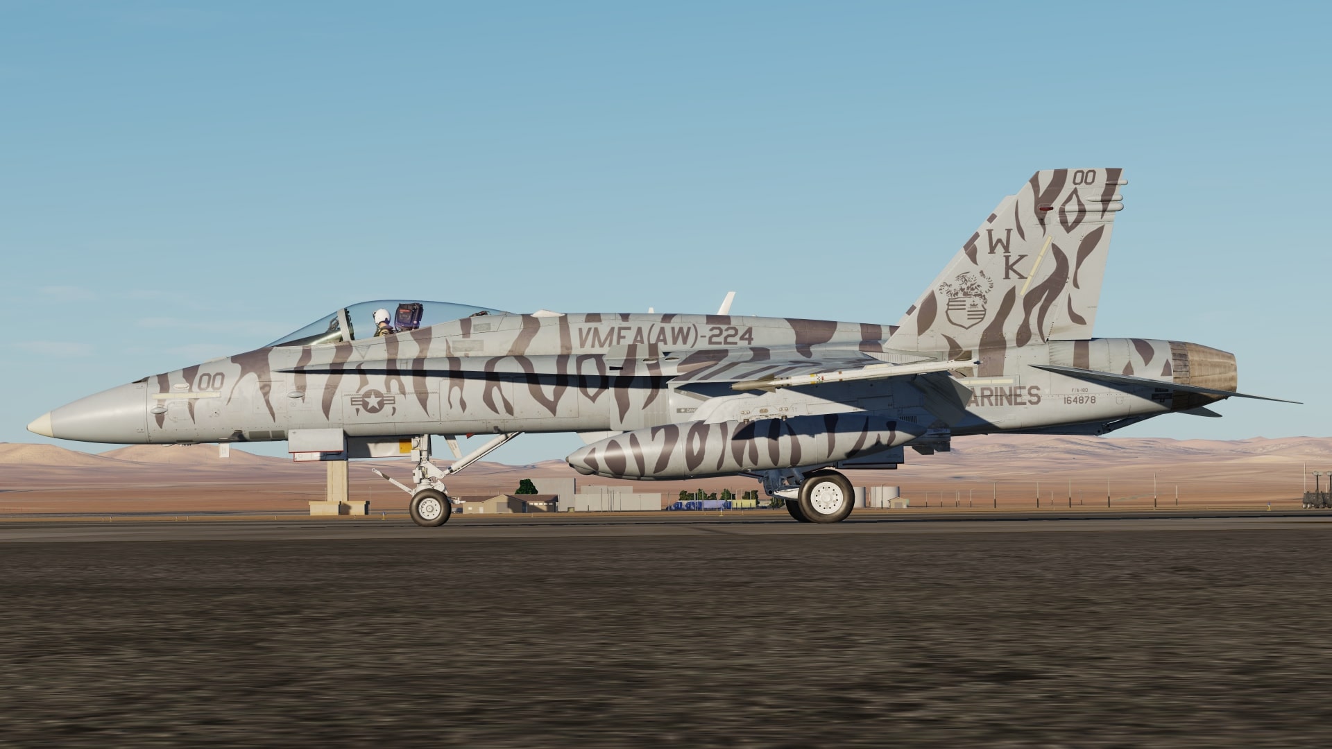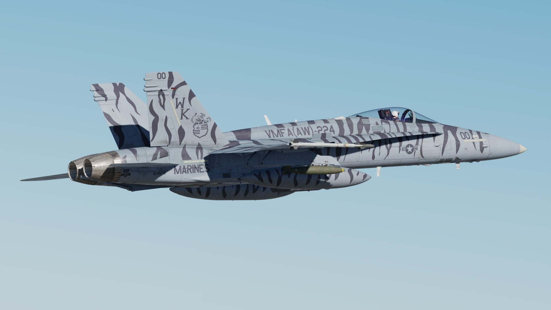 This skin pack includes CAG and CO birds from the 2012 deployment on the USS Enterprise, and are intended to complement the VMFA-251 line bird included with DCS World.  While the skins use the dynamic MODEXes (side numbers), the MODEXes for these skins were historically in the 400 series (400 for CAG and 401 for CO).  Each skin has a "normal" version and a weathered version.  Weathered skins have a bleached effect as if the aircraft were heavily exposed to the sun for months on end.  Normal skins include pilots with green flightsuits, while weathered skins include pilots with desert flightsuits.  Note: this skin pack is distributed as an EXE installer.