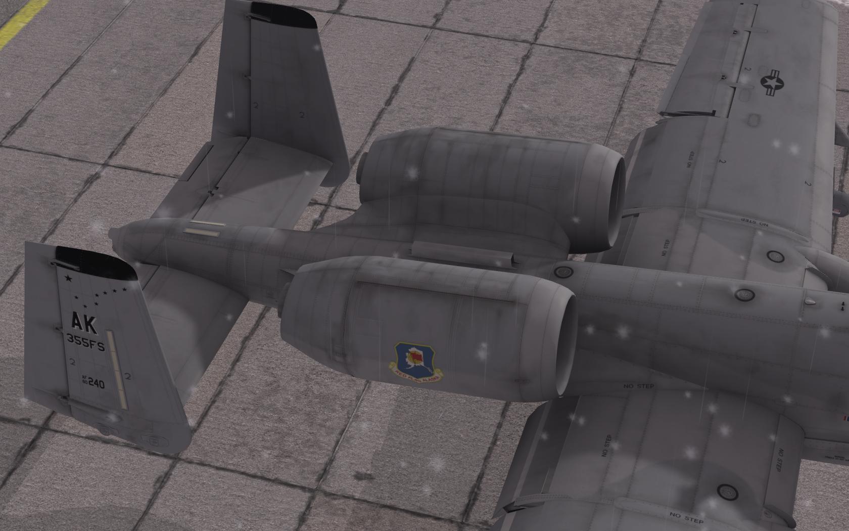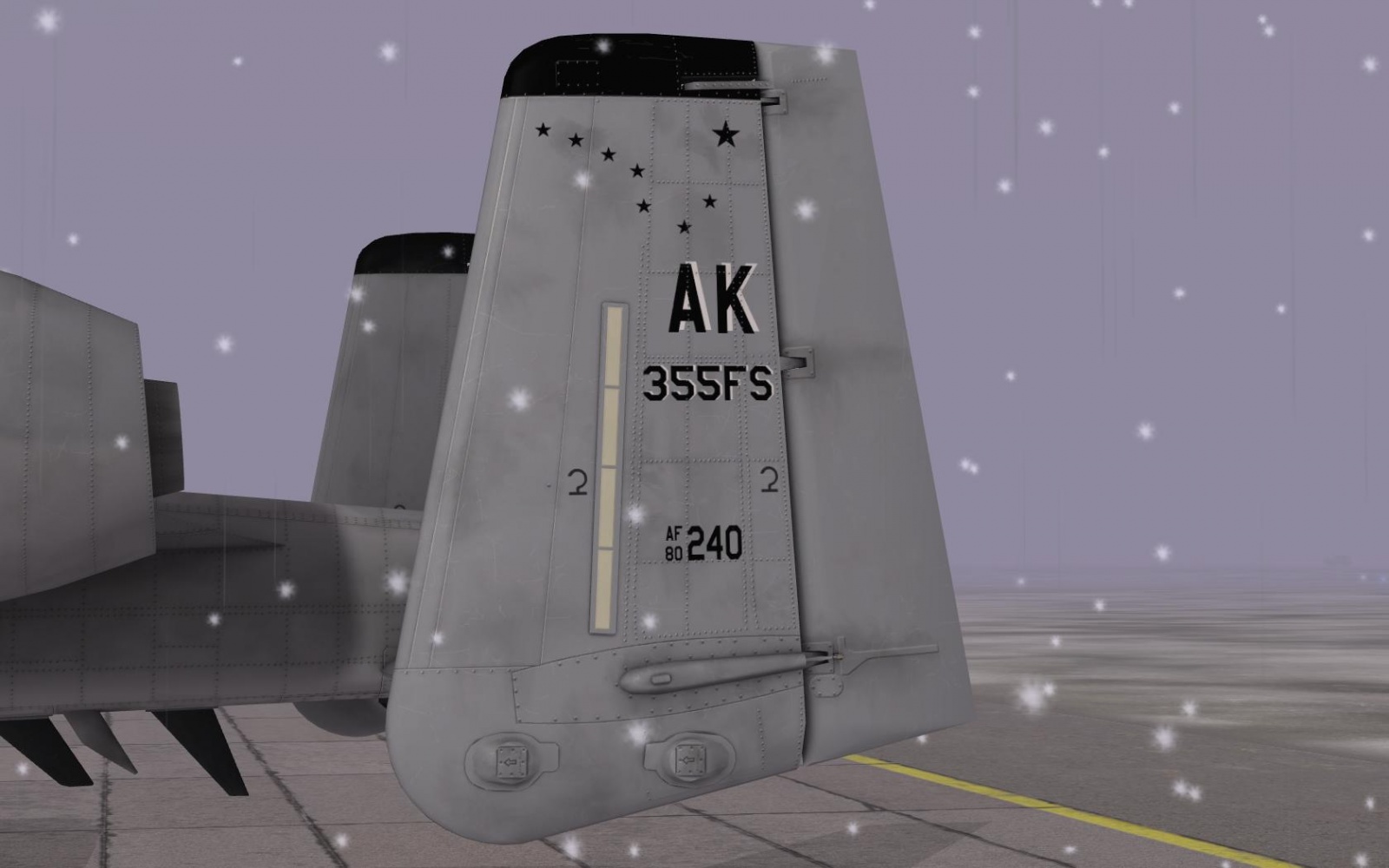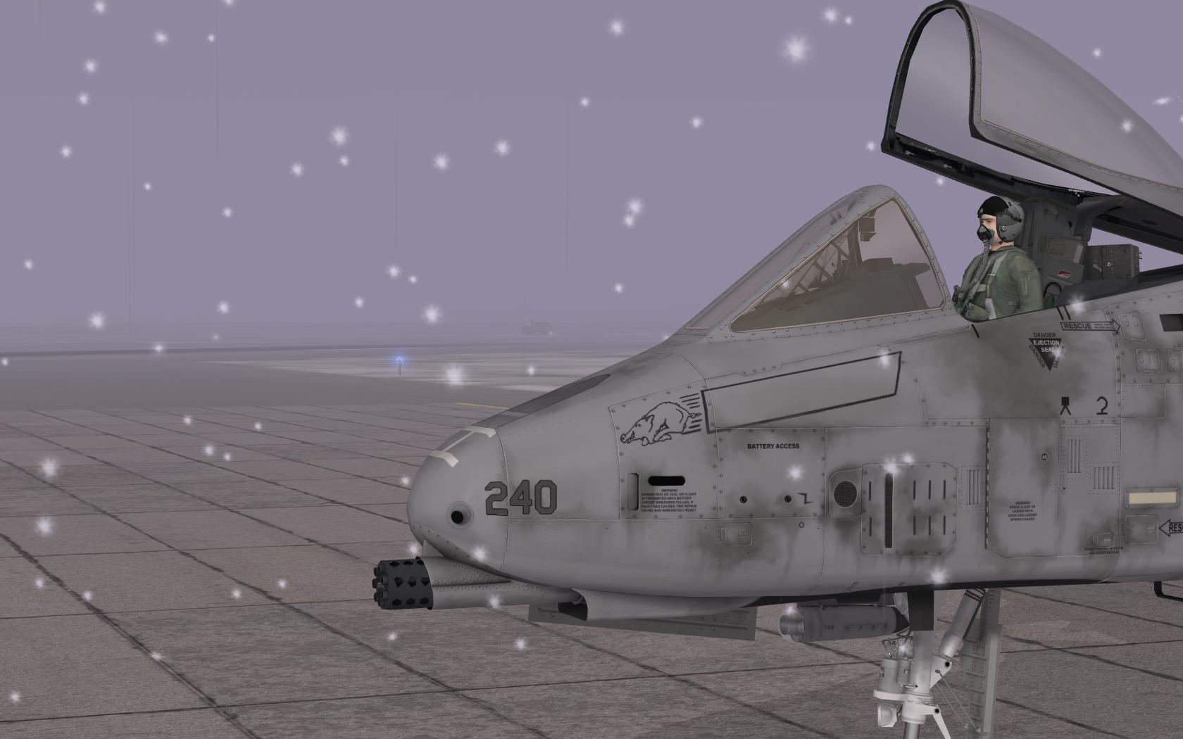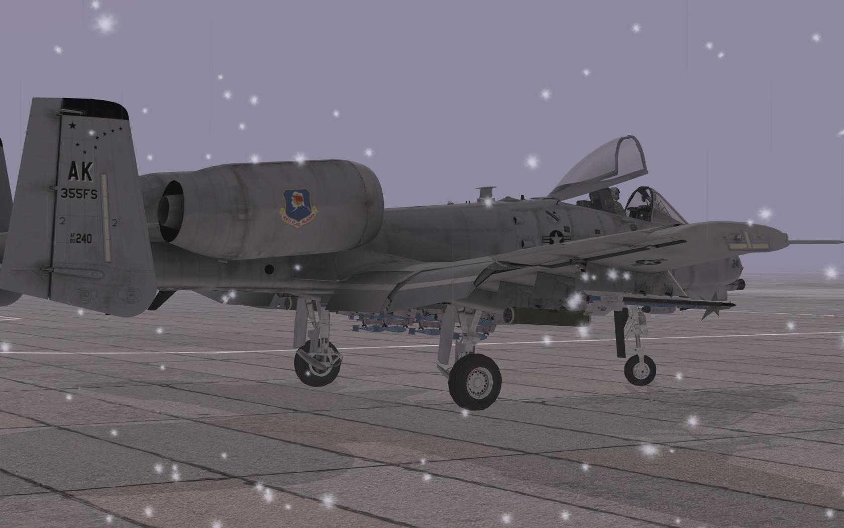 A depiction of A-10A, SN 80-221, of the USAF 18th Tactical Fighter Squadron, Eielson AFB, Alaska, in 1981. This aircraft featured the experimental Arctic camouflage pattern known as the "Snowhog," designed for operations in snowy, cold-weather environments. The scheme consists of irregular black patches on a white background meant to blend the aircraft with its surrounding winter landscape. Though officially confirmed to have been applied to only one aircraft, it's speculated that up to three aircraft may have donned the livery during testing phases. This camouflage was never fully adopted by the USAF and was used during Operation Cool Snow Hog.