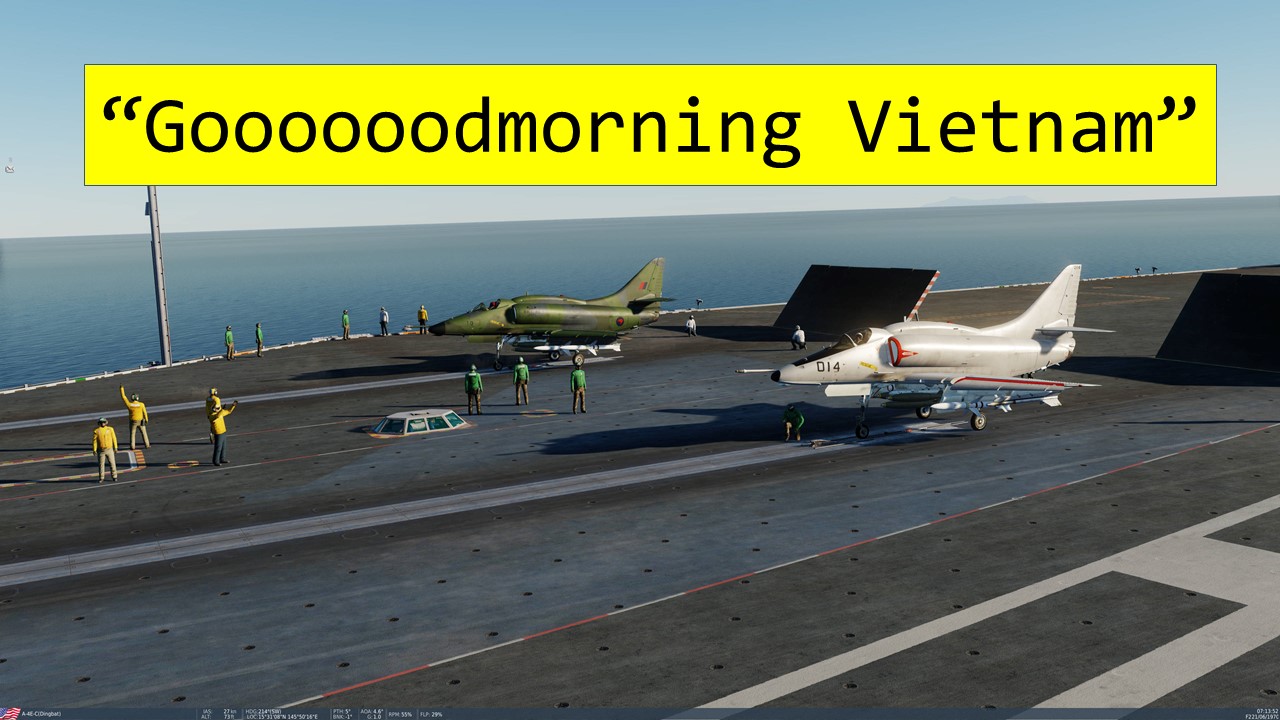 Coop mission (solo is possible too) on the Marianas Map for Huey, Gazelle and the FREE A-4E-C Skyhawk mod with Vietnam stylish theme (including radio broadcast of Robin Williams as Adrian Cronauer with Fortunate Son on the playlist)