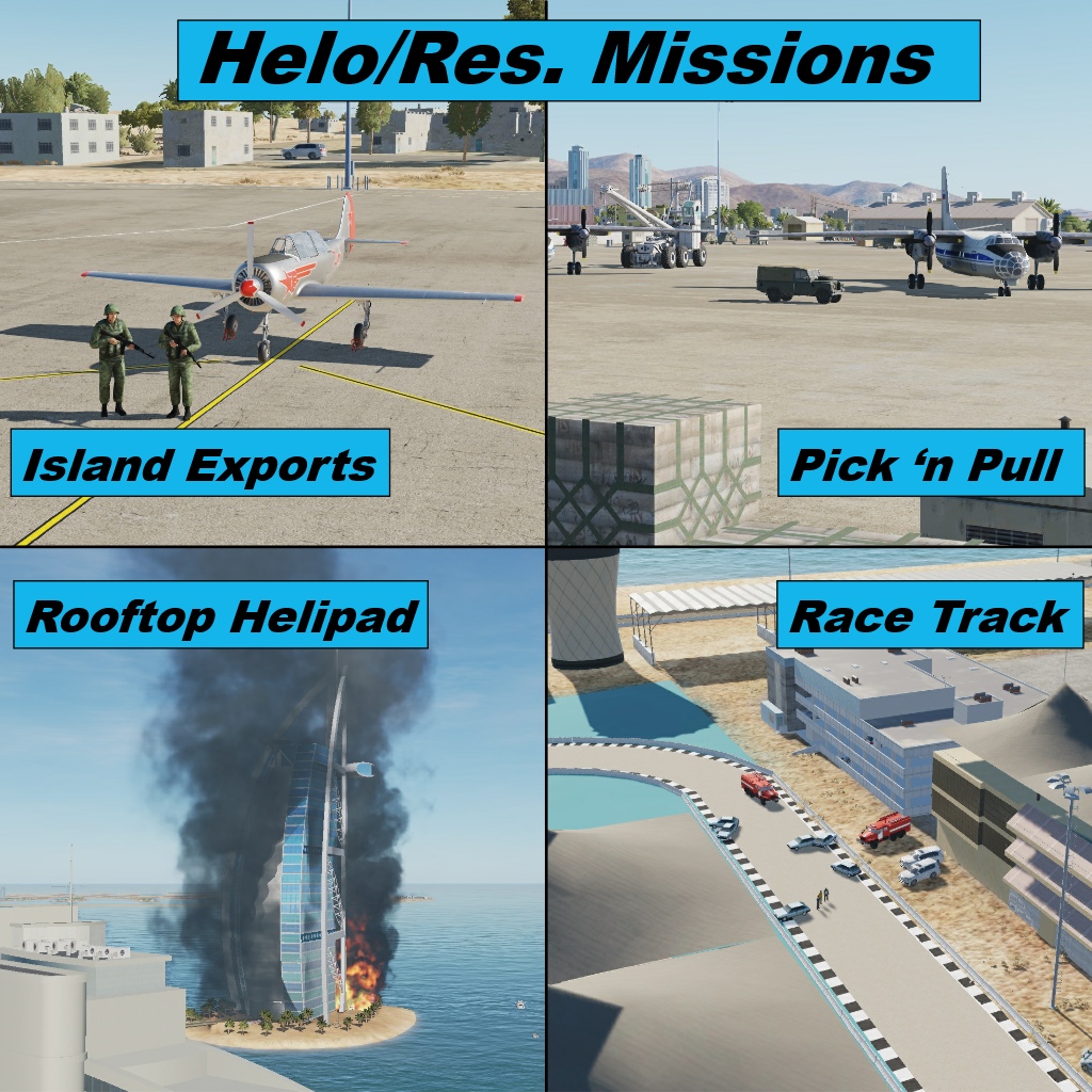 Every flyable aircraft and helicopter in DCS is available to be flown via the Dynamic Spawn tab.  A list of Rescue helicopters are available via the traditional spawn method.  These helicopters are the only ones that can complete the mission objectives within the “Helo Missions” section.  More on that later.