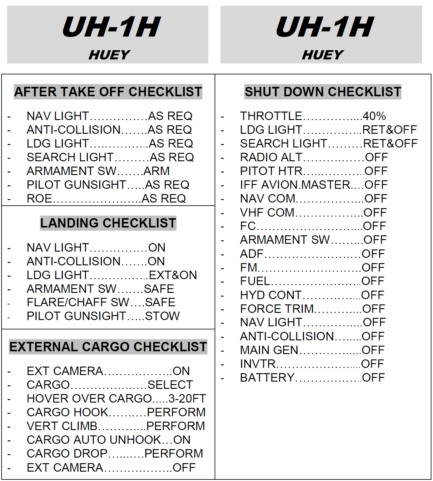 UH-1H Quick Checklist.