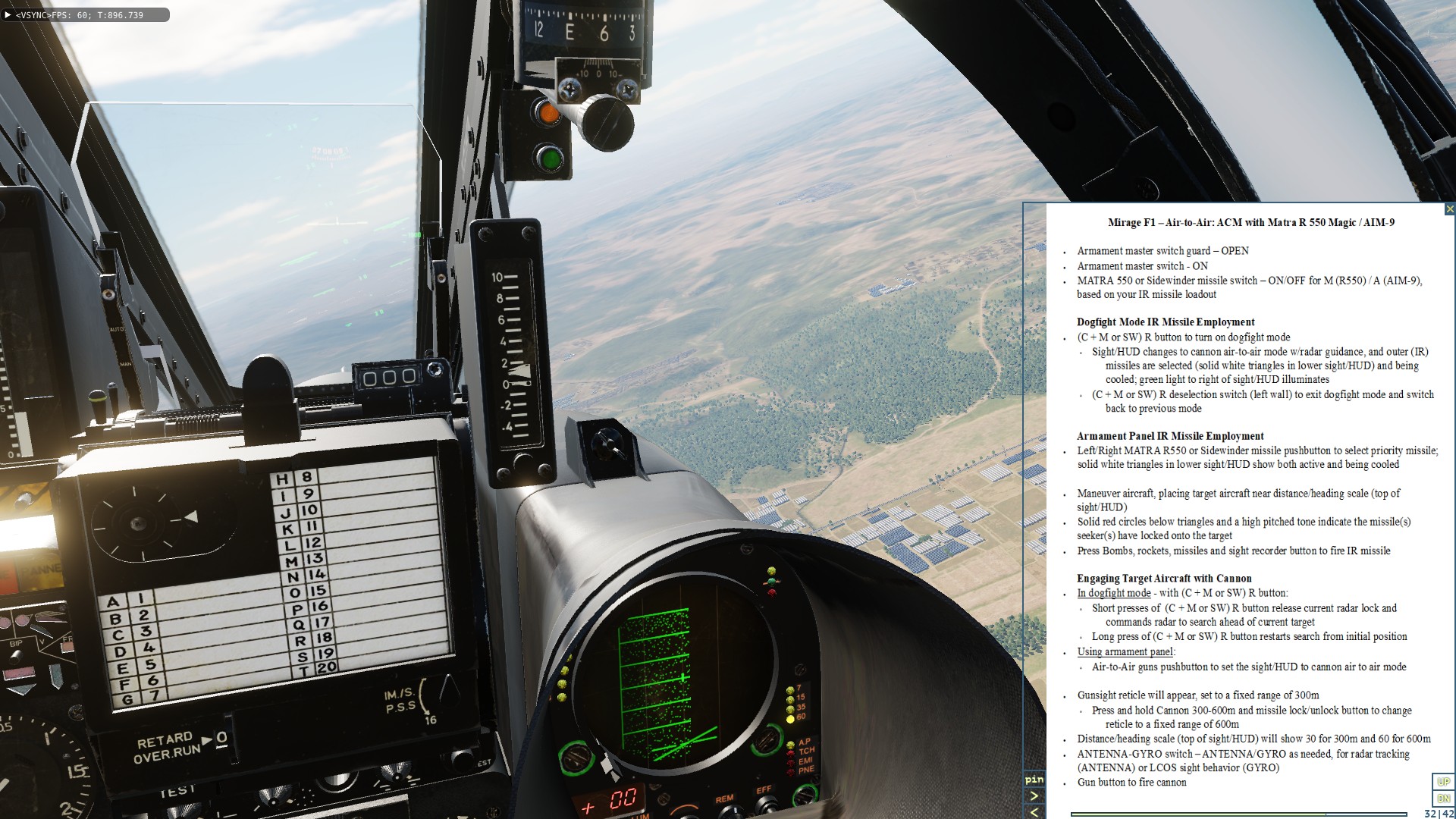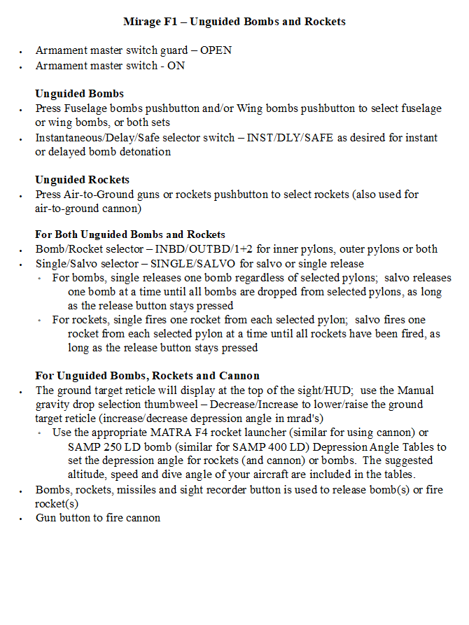 Kneeboards for Mirage F1 for air-to-air missile, unguided bombs and rockets and cannon employment