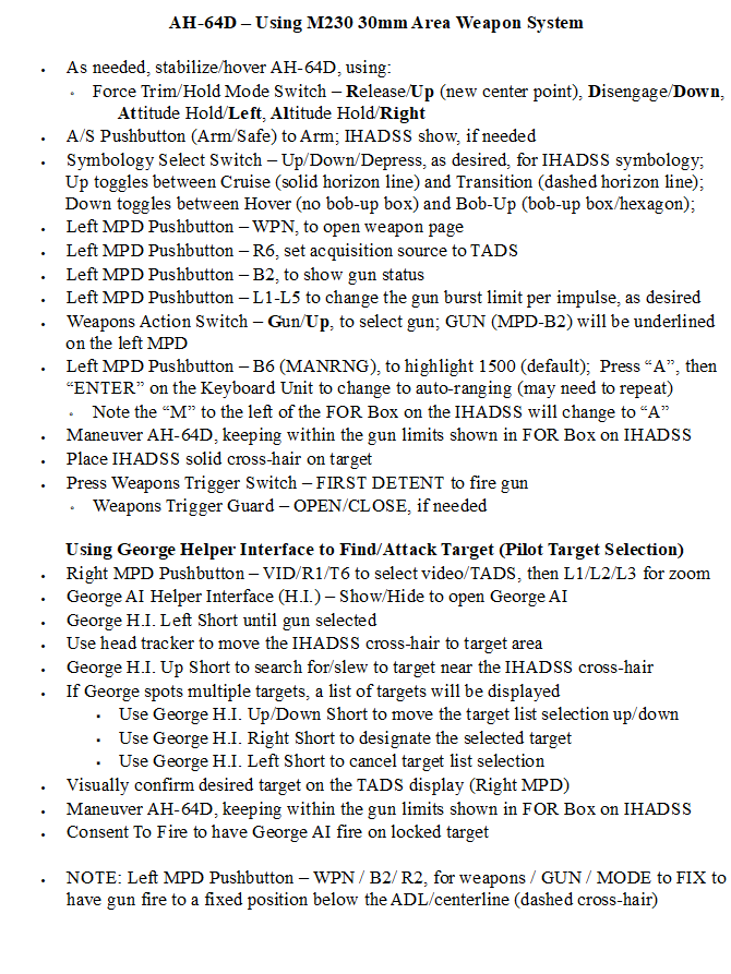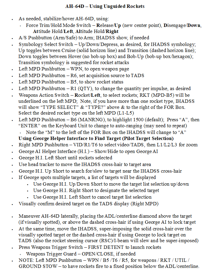 Kneeboards for AH-64D Apache for guided/unguided weapon employment.