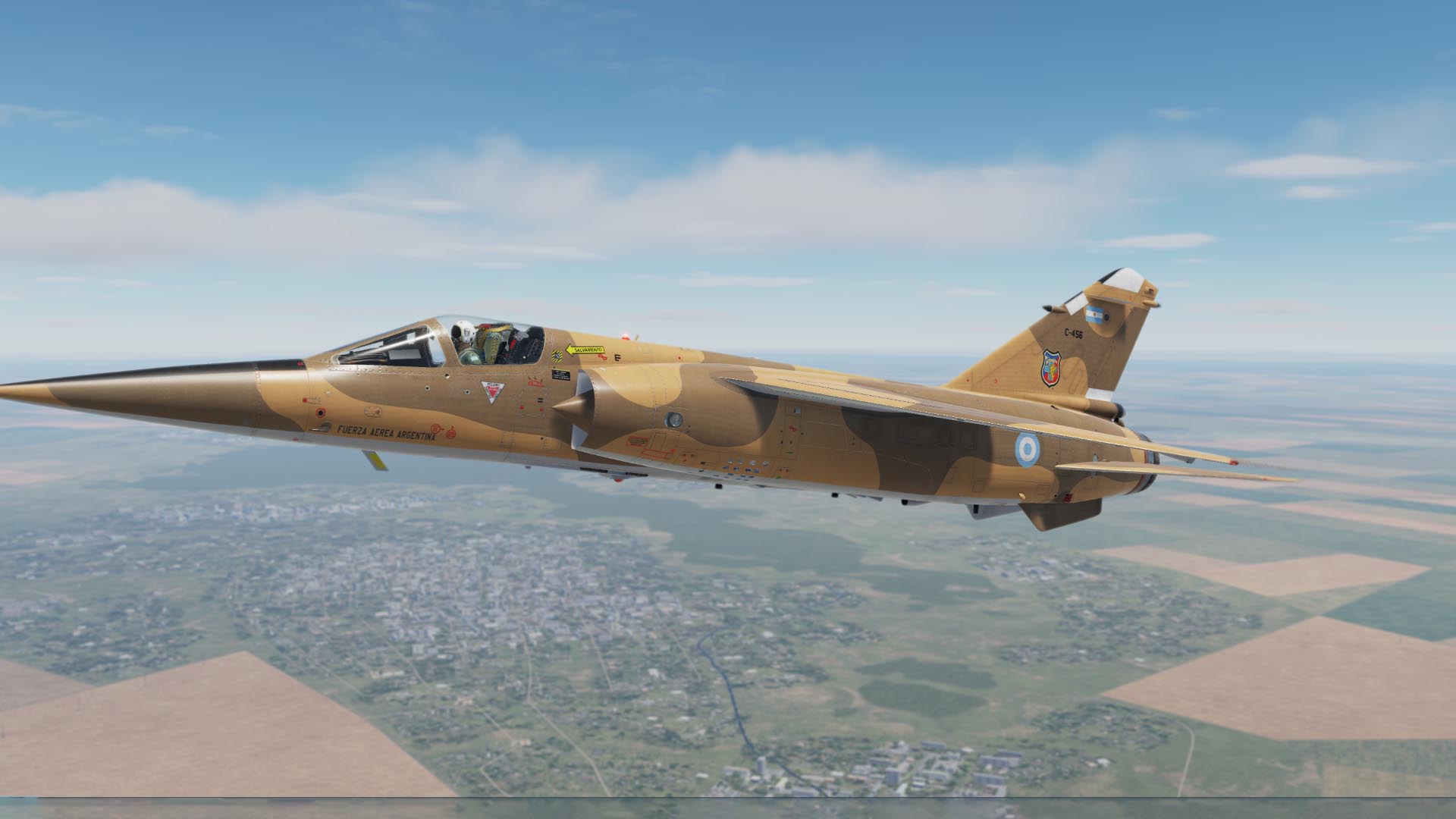 Fictional Skin in the colors of the the Mirage III Scheme in the 70s, with the 10th Brigada Aérea based in Chubut, Rio Gallegos.