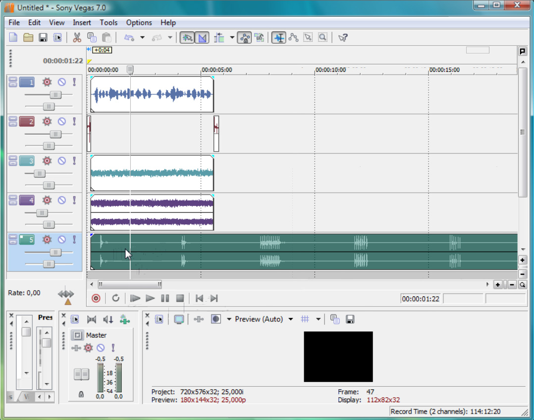 2. Многоканальный микс и обработка в программе Sony Vegas