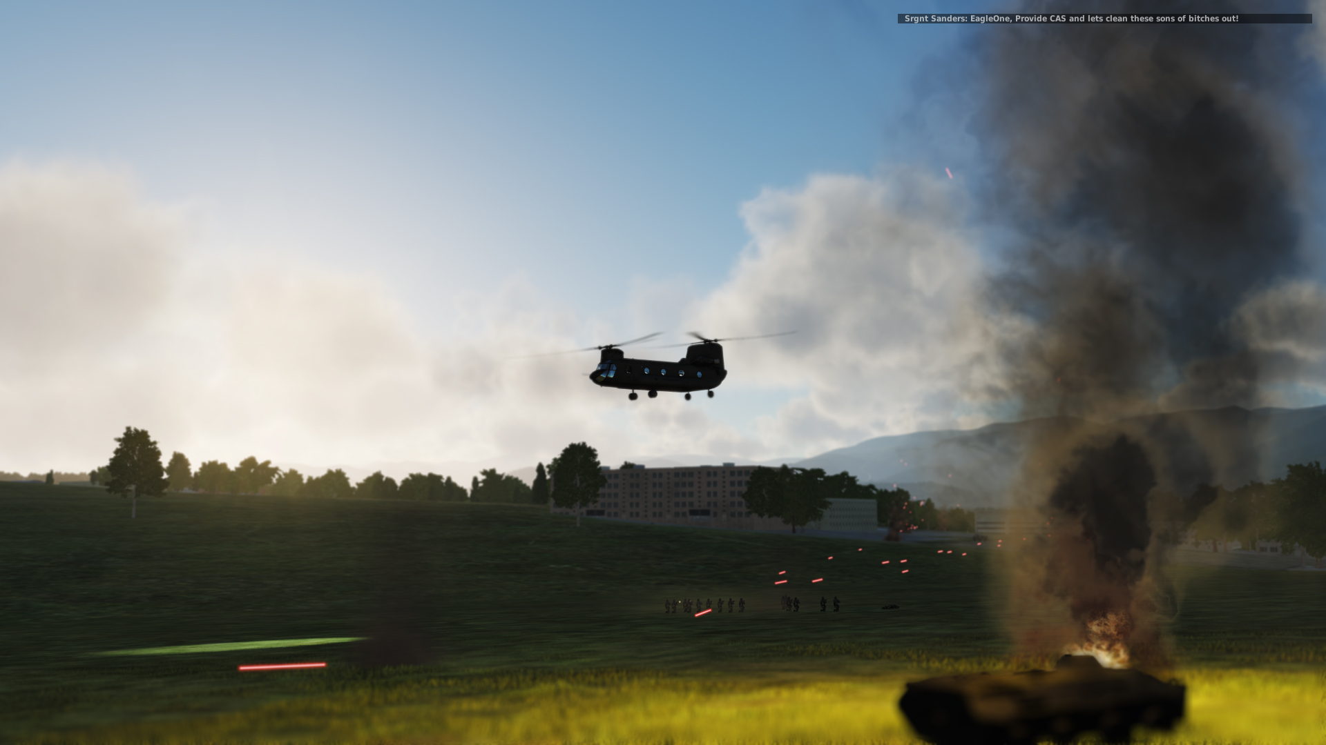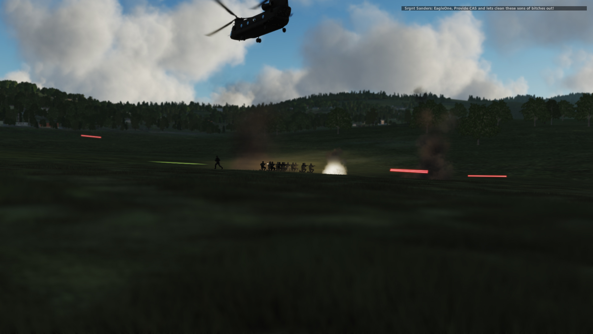 Bravo Team has been in the bush for nearly 2 months. Our commander has order some much need R&R for this team and they are currently being transported away from the front lines via APC to OutPost 27B. Your mission is to fly from FARP Hollywood to Outpost 27B and transport the troops back to FARP Hollywood. The FARP Commander has also invitee the families of the troops to welcome them home. <br />