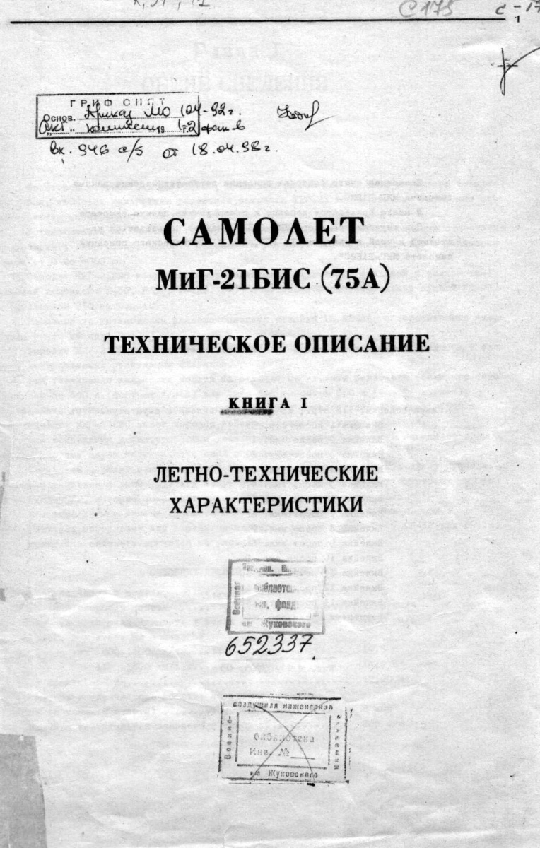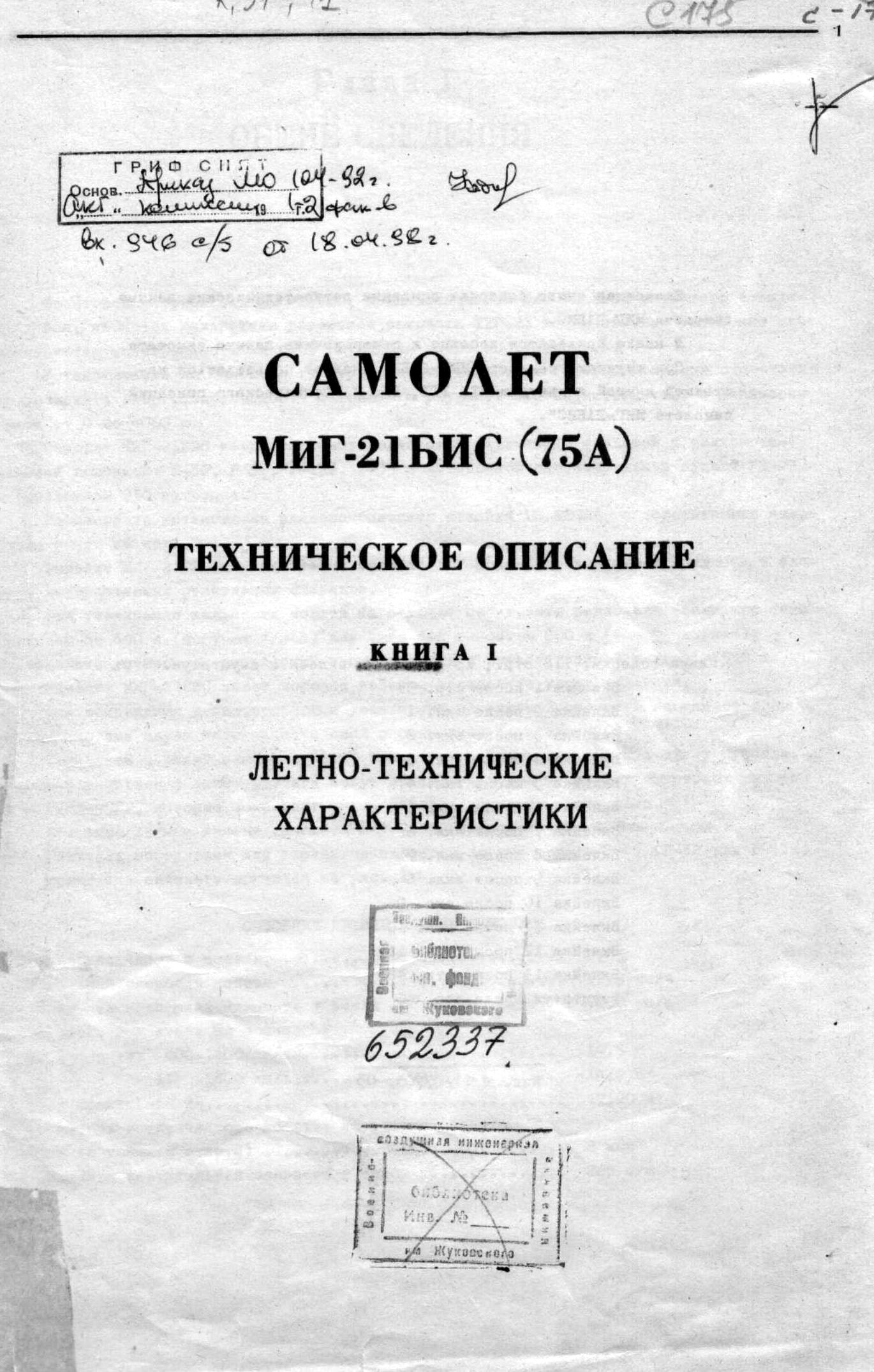 MiG-21BIS (75A) Technical description, book 1, flight characteristics