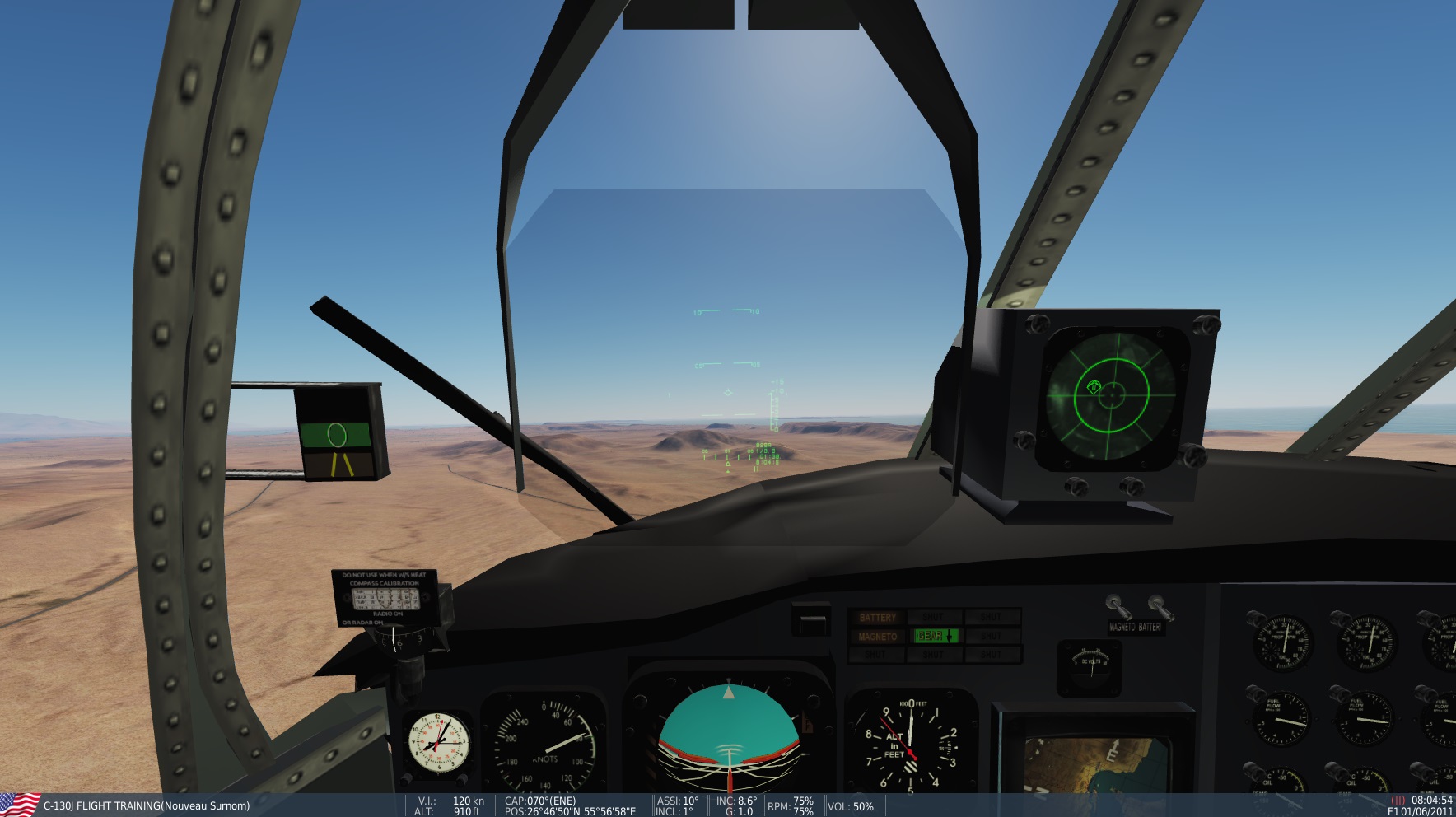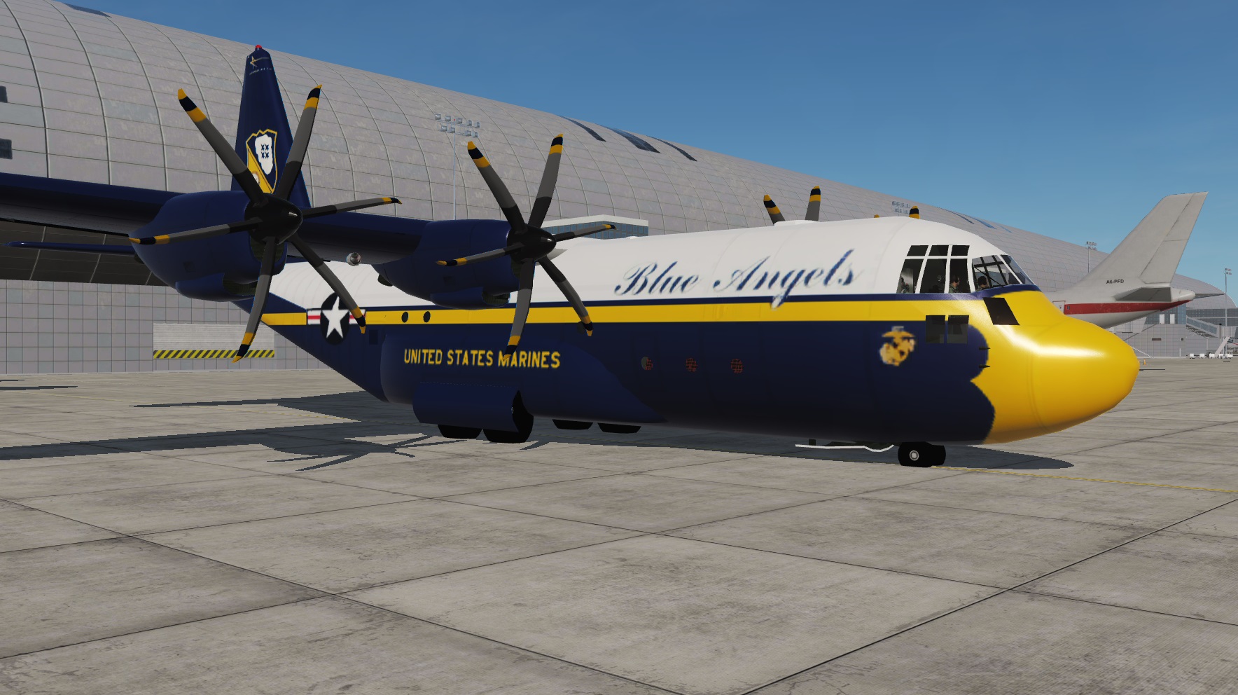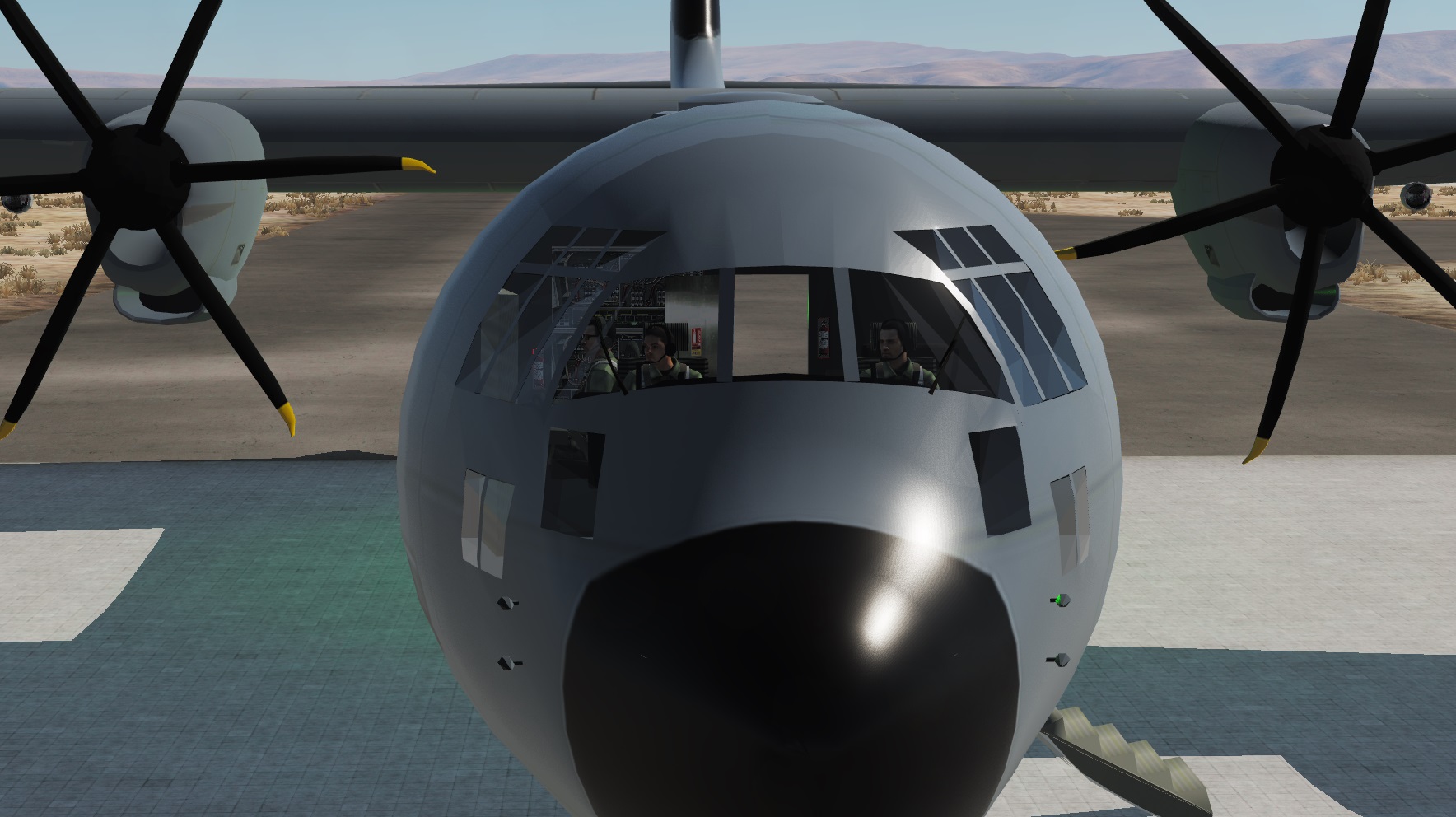We have designed a fully functional but not clickable C-130H cockpit? based on A10A avionics. The cockpit of the J digital was too complex for our small means.