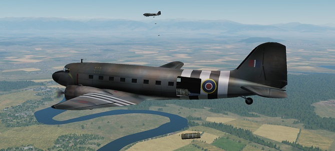 A military paratroop version of the DC3/C47 mod. New 3D shapes courtesy of Markindel and packaged with military liveries with kind permission of Markindel/CrazyEddie. Revamped FM values in an attempt to more accurately represent the performance of the real aircraft. Ability to drop WW2 era troops inspired by the work of Eric and Patrick Cuesta's AC130 mod.
