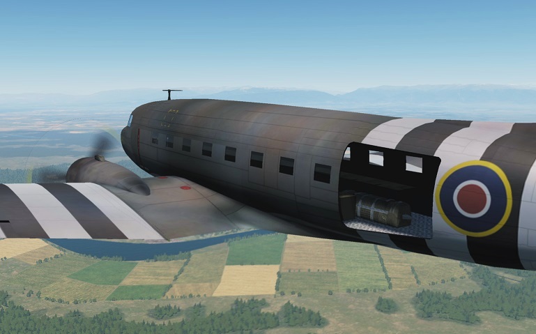 A military cargo version of the DC3/C47 mod. New 3D shapes courtesy of Markindel and packaged with military liveries with kind permission of Markindel/CrazyEddie. Revamped FM values in an attempt to more accurately represent the performance of the real aircraft. Ability to drop WW2 era supply containers inspired by the work of Eric and Patrick Cuesta's AC130 mod