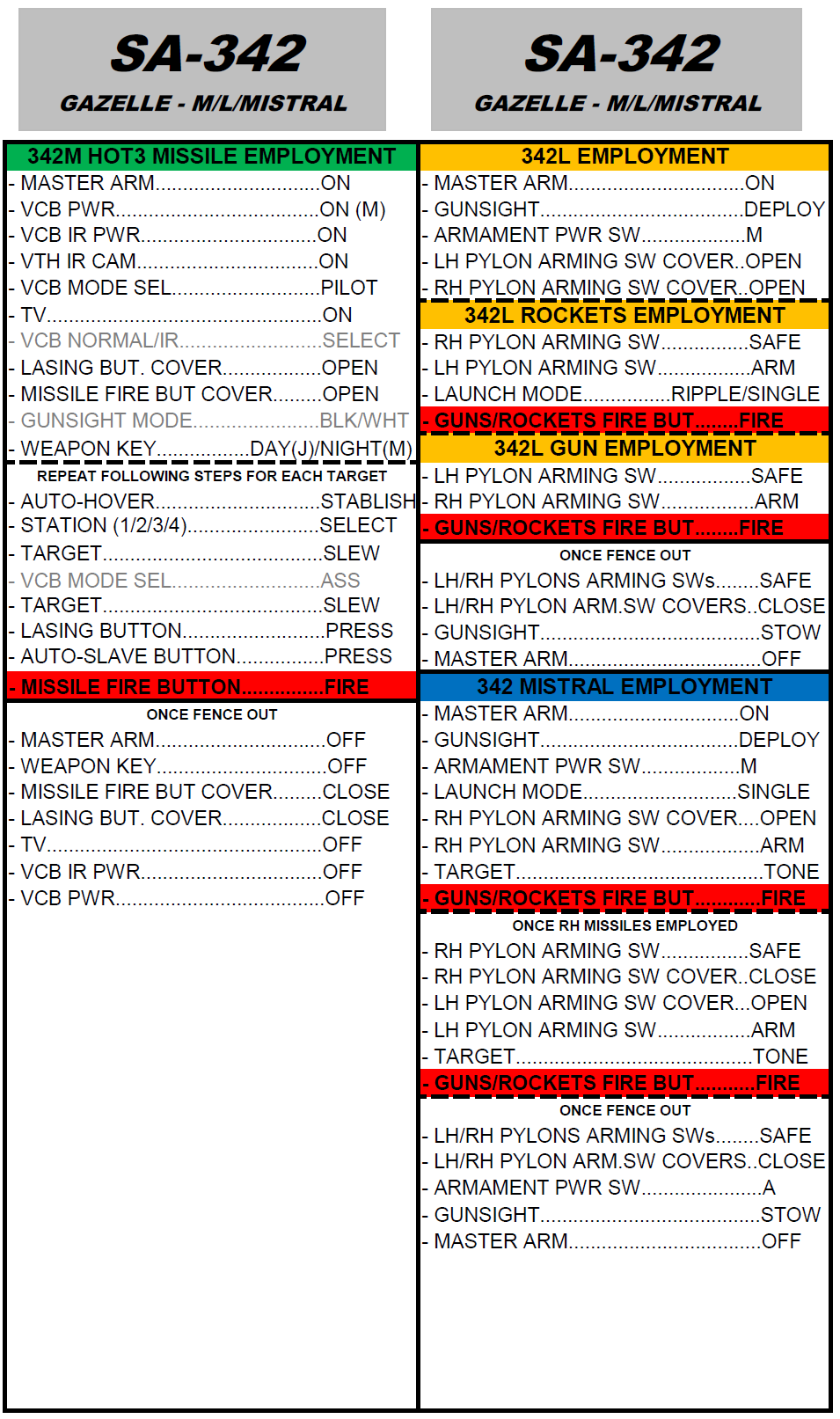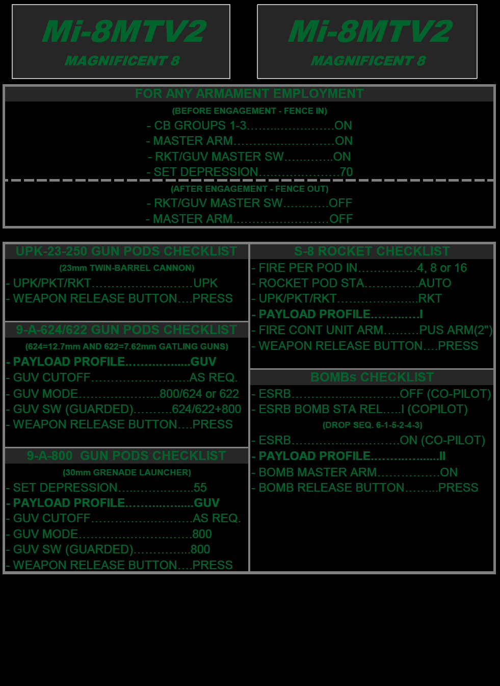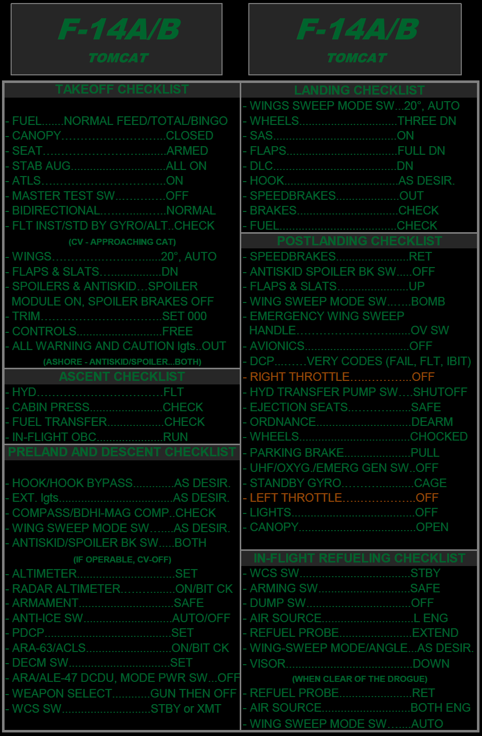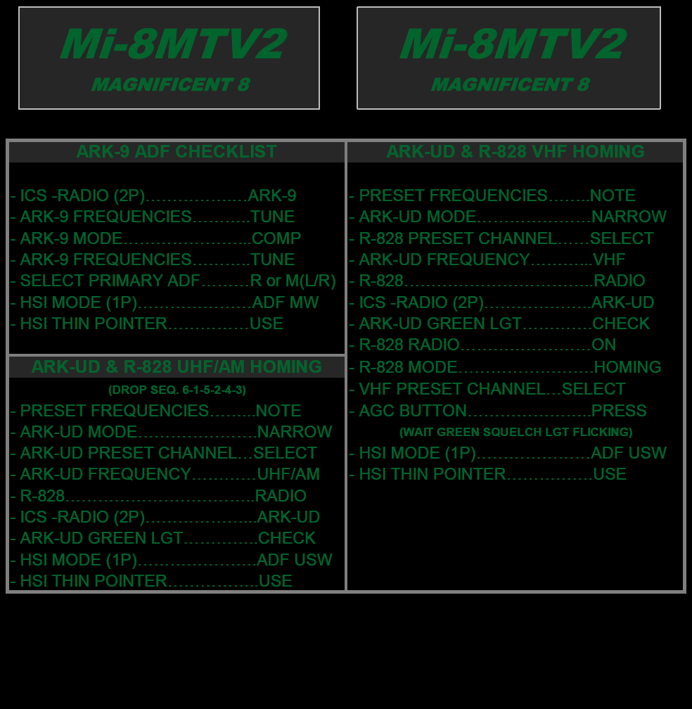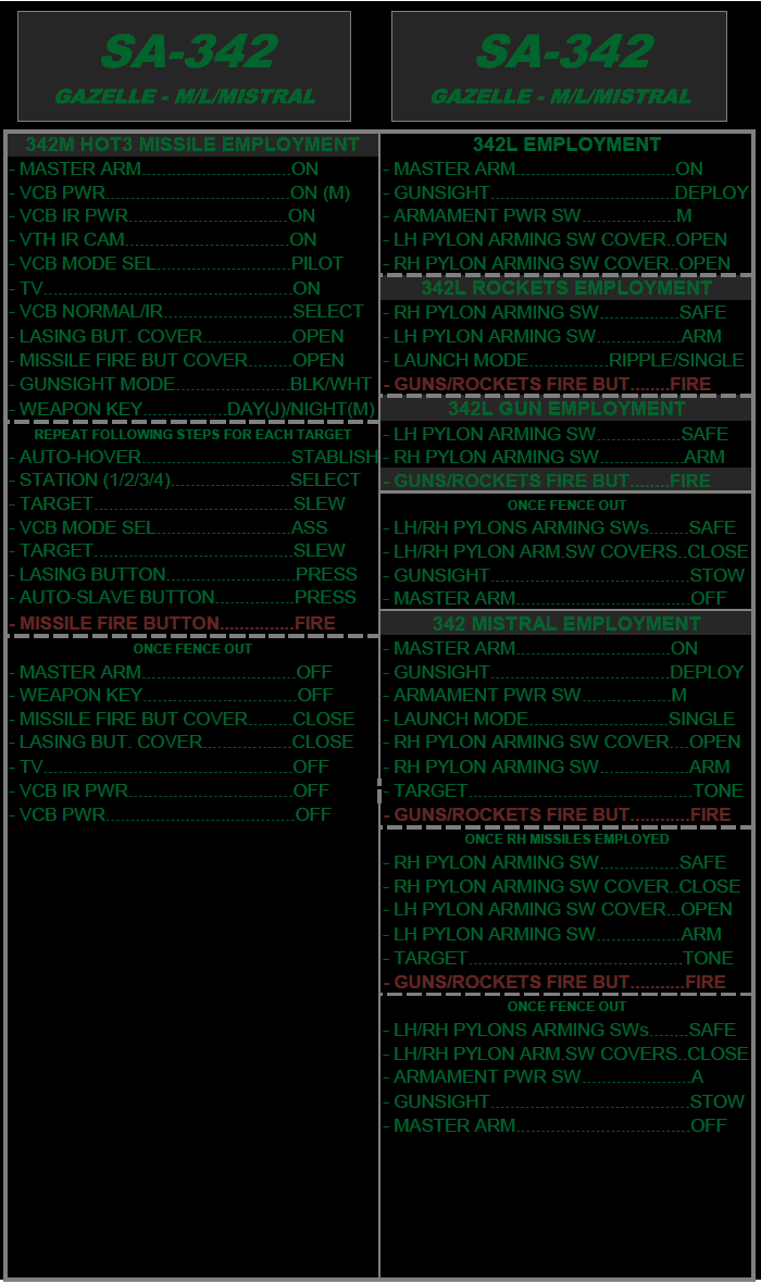 This is a checklist far from the real one, but that will get you flying quick and safely. Use at your discretion. (VS 1.1 Night Version - Update BEFORE START, AFTER START, TAKE OFF, LANDING and SHUTDOWN Checklists. Introduced a Navigation Checklist)