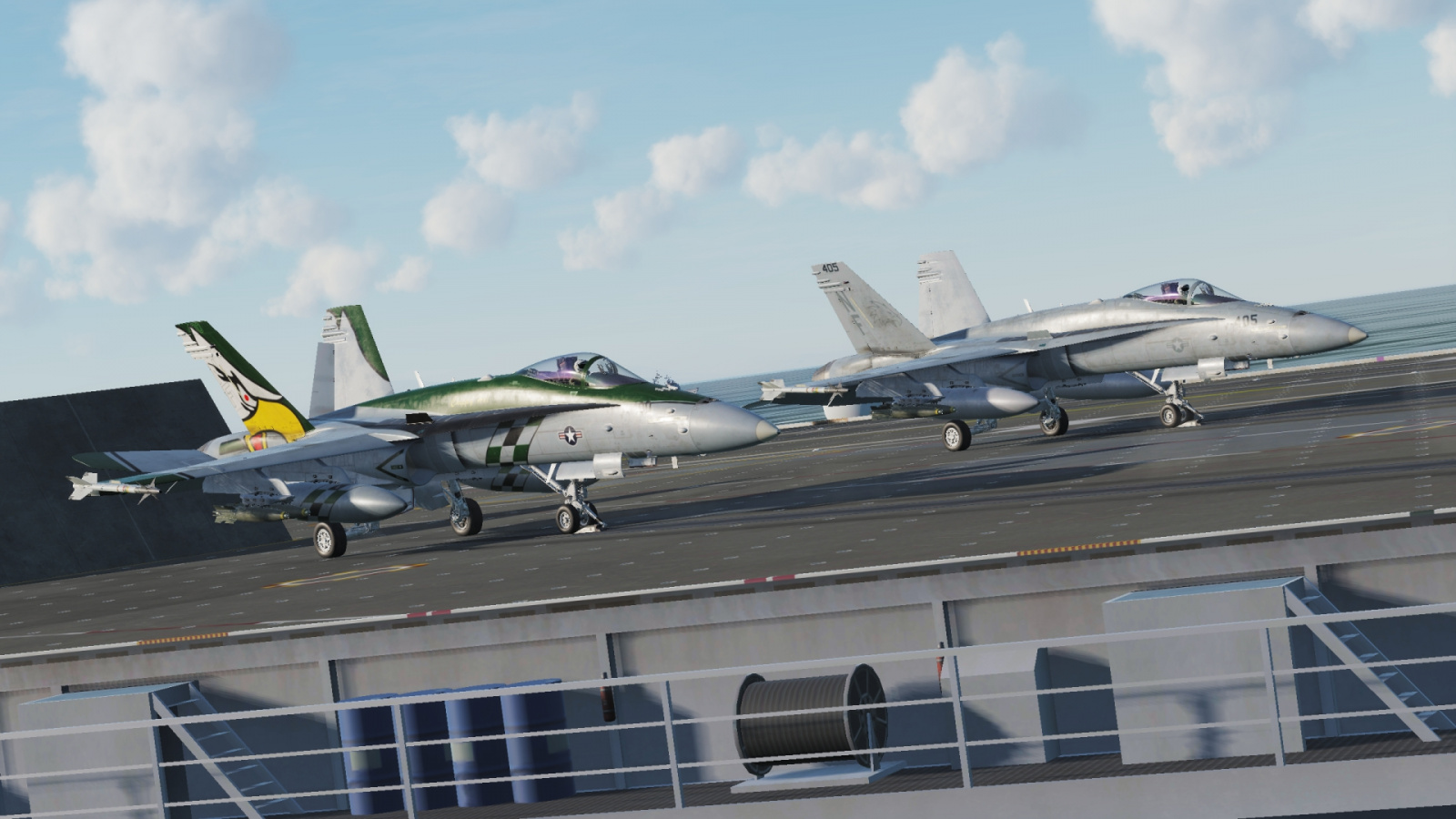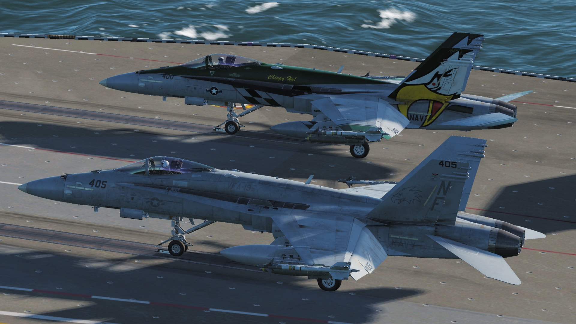 VFA-195 Dambusters CAG Livery and a Low Vis "Line" Livery. Line Livery has customizable Tail Numbers ingame. CAG Bird is fixed.