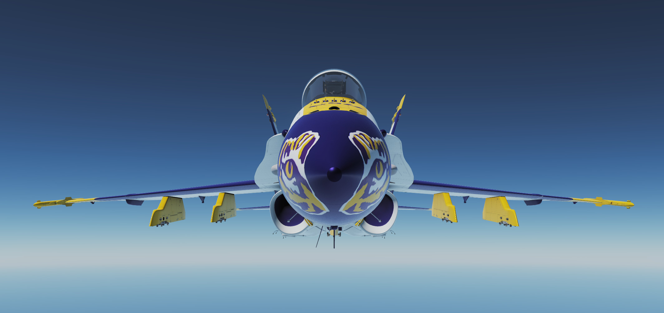I released this new version as "LSU Hornet Championship Edition" ("LSU Hornet v2" in the mission editor Paint Scheme menu) so people who prefer the previously released "LSU Hornet" can still download that one and even use these together to form a swarm of LSU hornets!