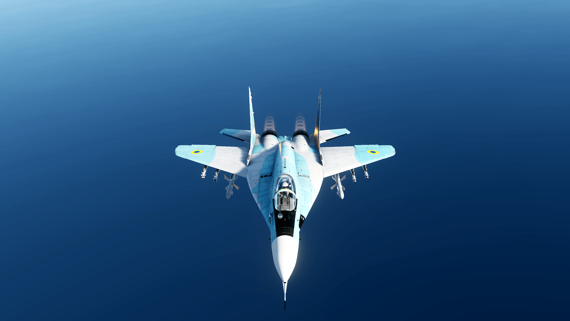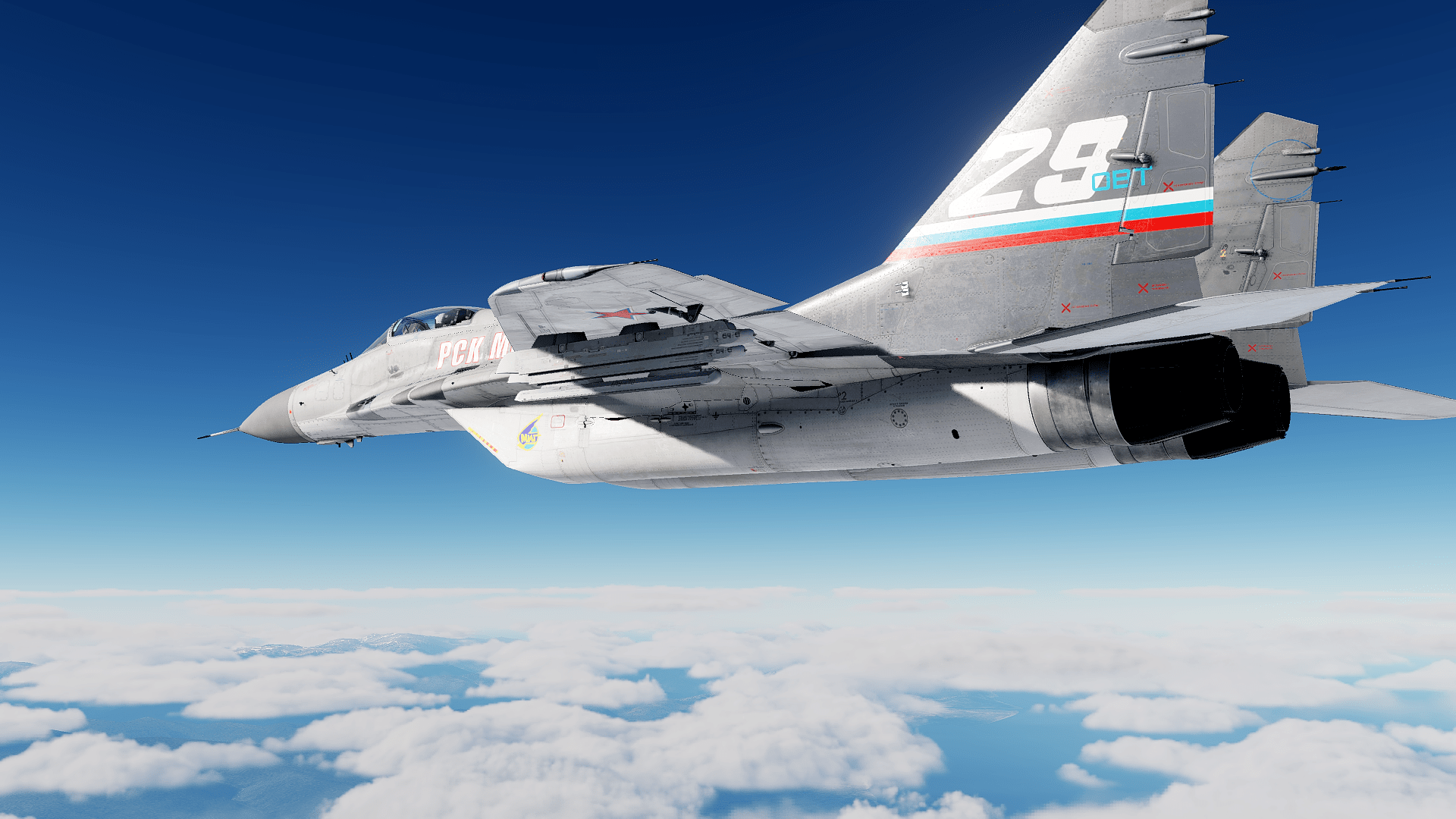In 2001 reworked to MiG-29M OVT (Отклонение вектора тяги ОВТ, deflection of the thrust vector OVT) with engines RD-33 (RD-133) equipped with movable nozzles developed by Sankt Petersburg Plant named after Klimov and called Климовский вектор тяги КЛИВТ, Klimov's thrust vector KLIVT. Aircraft was in grey painting. In fact, during MAKS 2001 exhibition it was only a demonstrator with dummy-nozzles, real engines with TVC nozzles were installed later.