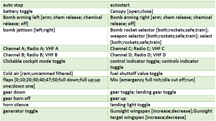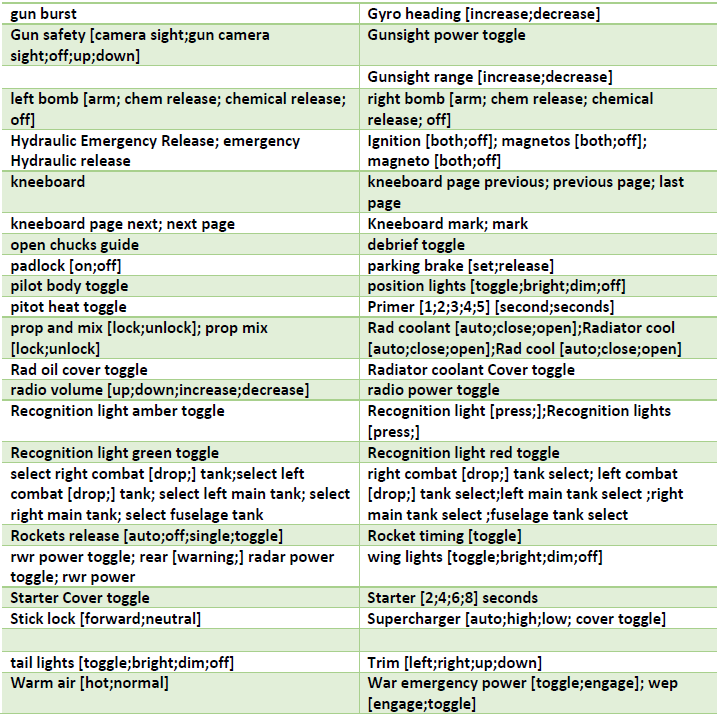What better way to defeat the Axis Empire than to talk them to death! Give those Messers a run for their money! Whoa, wait. Where are your guns? And your bombs? No rockets either? Well, I guess you can either be a good distraction, or deliver this mail, or both. With this Voice Attack you will be able to use EVERY SINGLE keybind as well as the listed Custom Commands. You can also add your own commands if you like too.