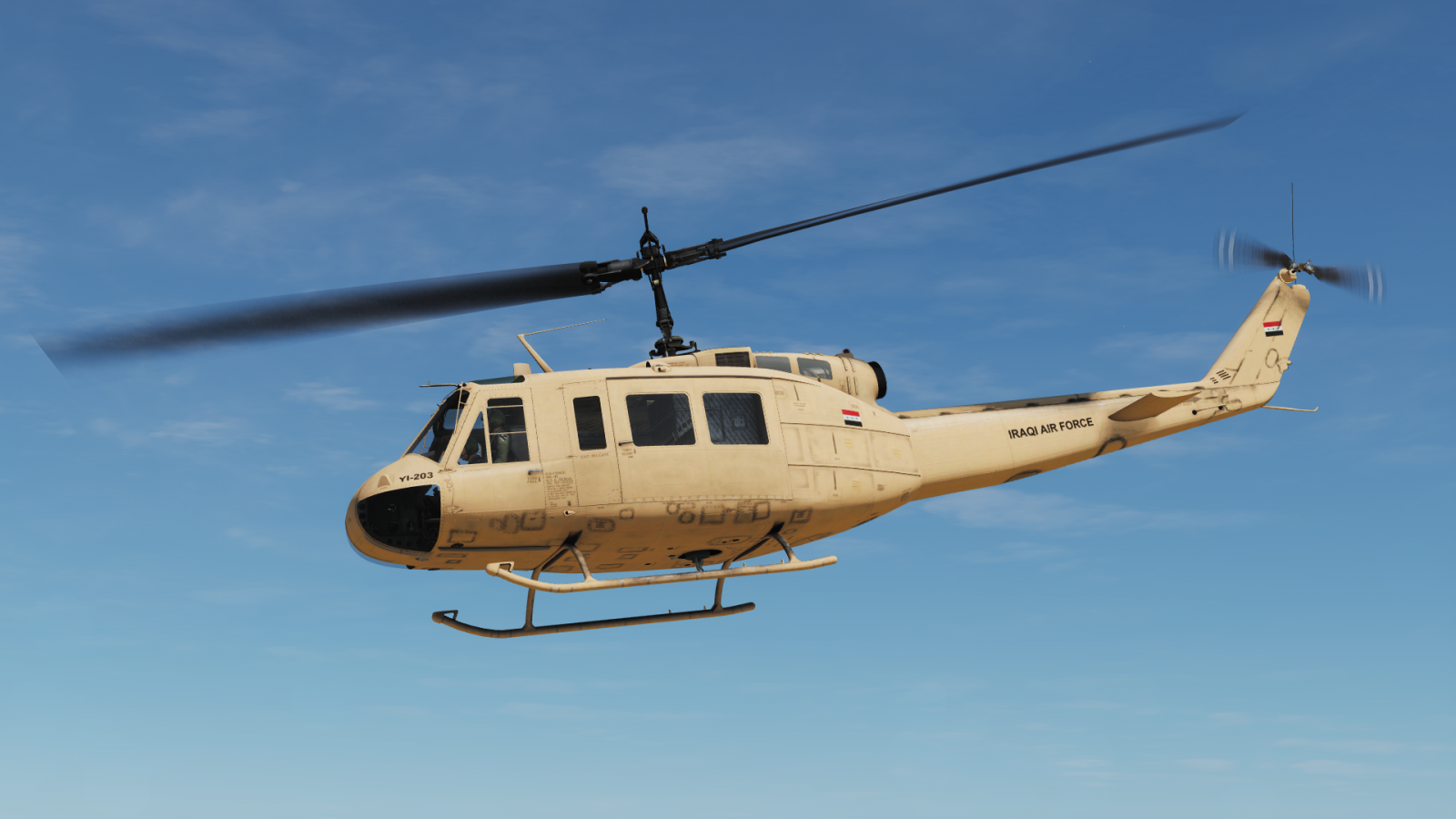 Kuwait (post Saddam)/Iraqi Air Force livery for the UH-1. On wingspalette this livery was listed under Kuwait, while it is clearly an IQAF livery. Available for USA and Russia.
