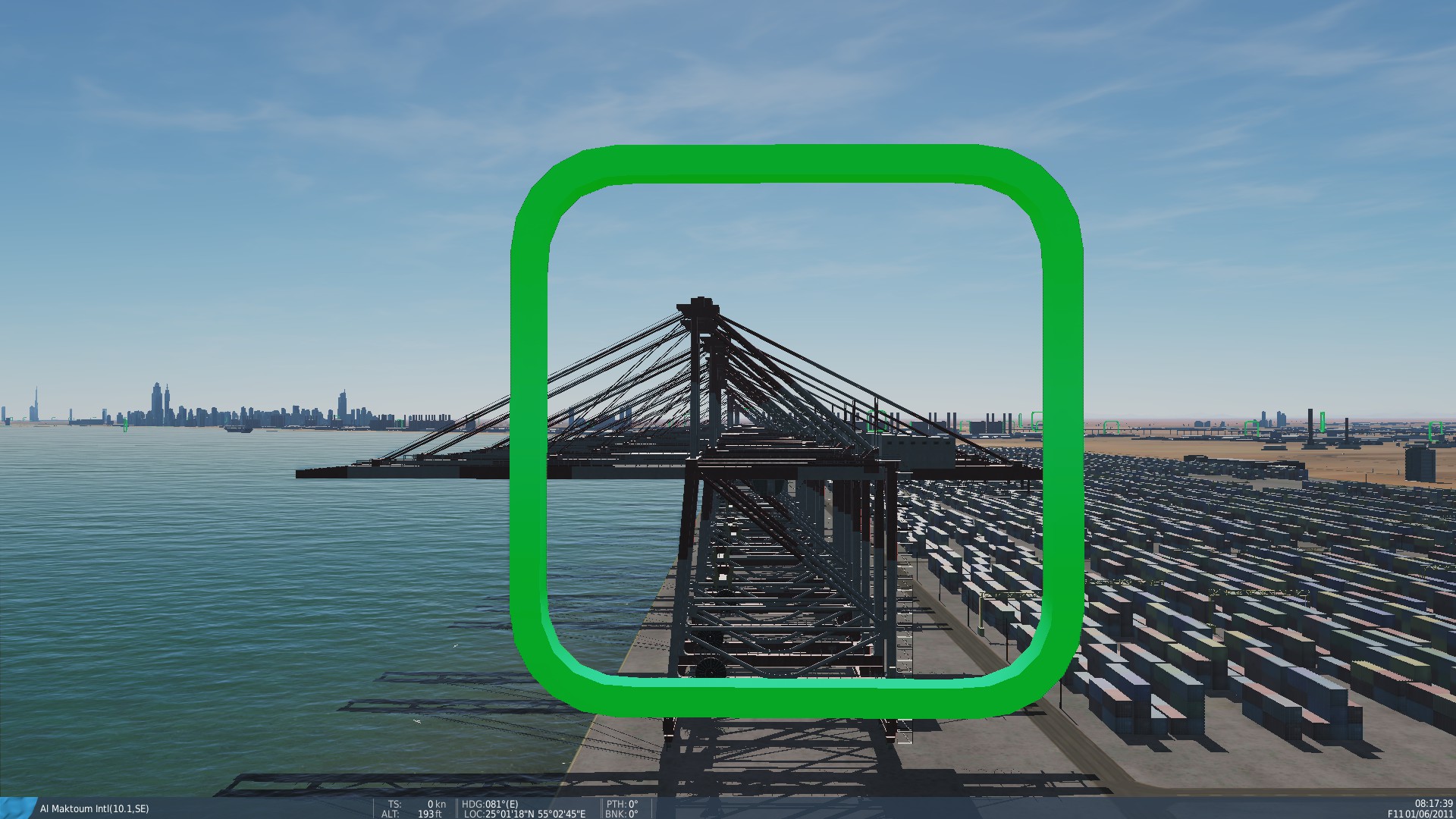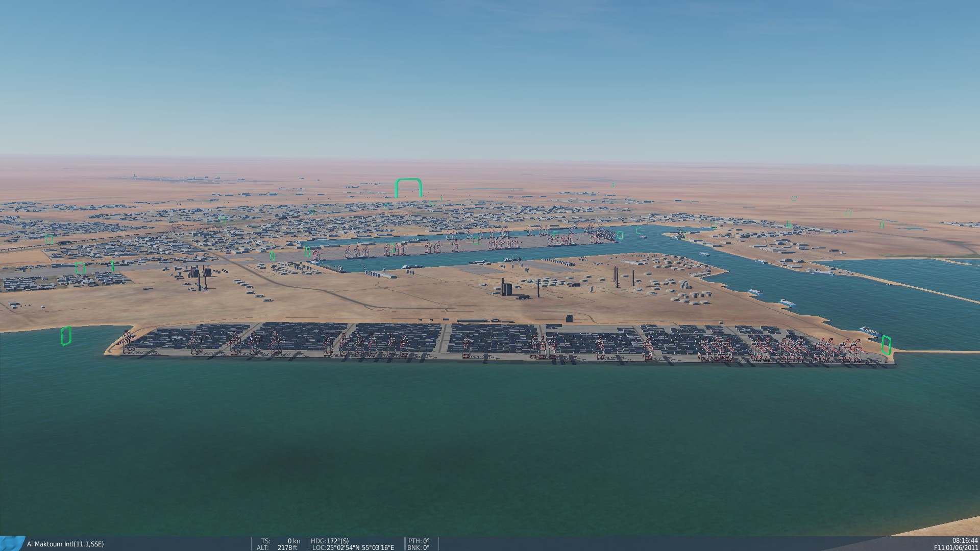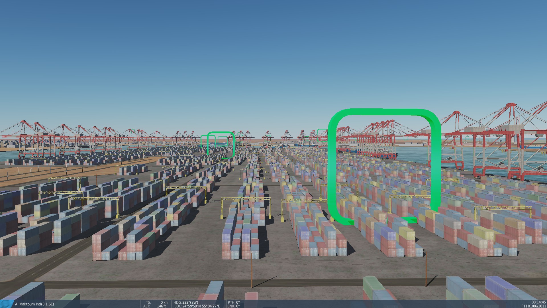 This is a course that is high speed, low speed, has obstacles and will really let you get the feel of your plane. 179 Gates to fly through. Aircraft carriers in the ocean with flying F-18's above the course. 90% of the gates are below 300ft. At the end are 2 sets of steel triangles to fly through. They are about 1/4 mile long. I believe they are cranes used to lift the cargo containers off the ships.