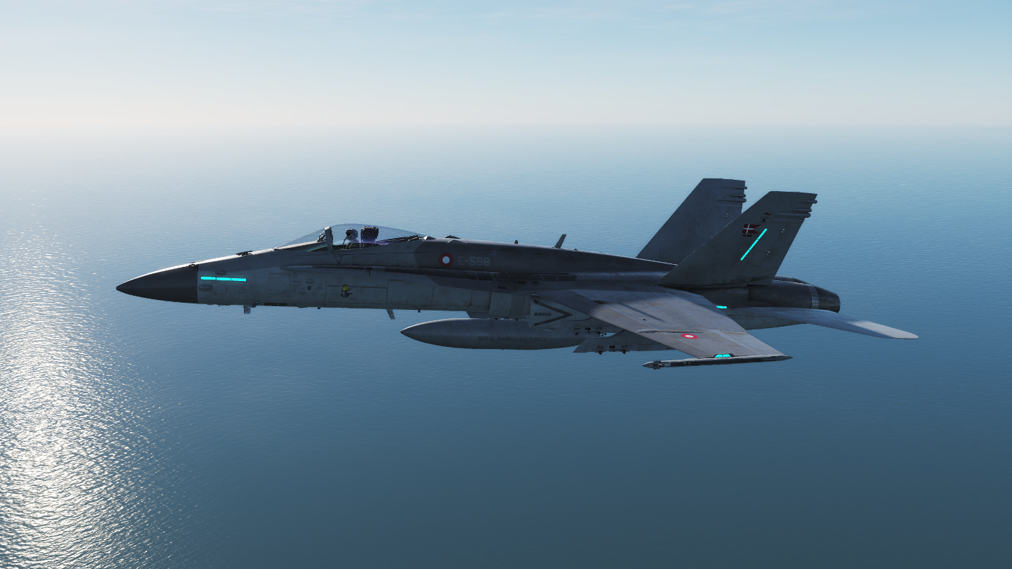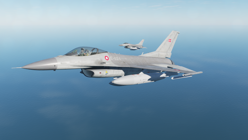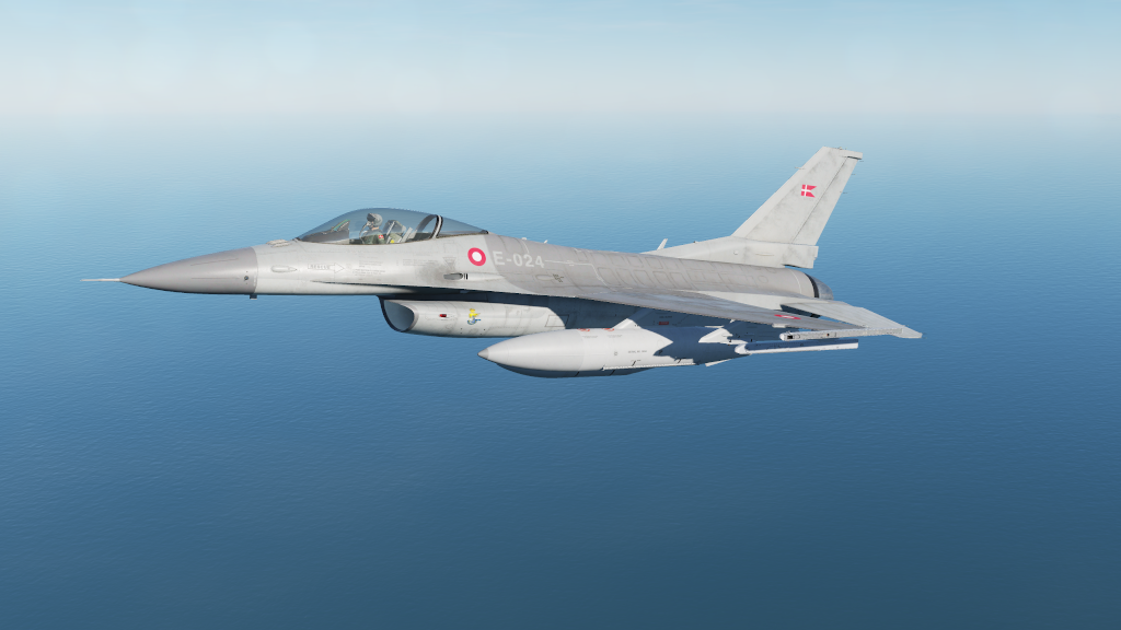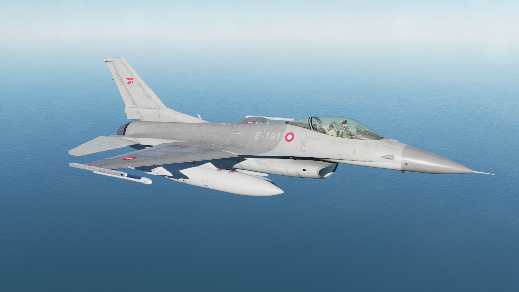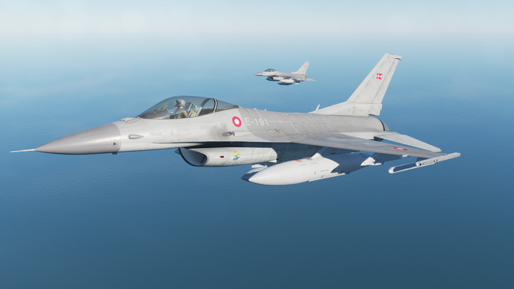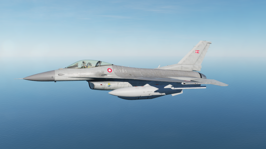Skin pack for F-16C representing a Danish version. The skin is made from several official and unofficial guides on the 3 tone gray design used on Danish F-16MLU using Federal Standard 595 colors and features a lot of markings and text on the skin. Pack contains 3 units from RDAF ESK730 (E-191, E-596 and E-607). With correct plane and airplane serial numbers used on those units.