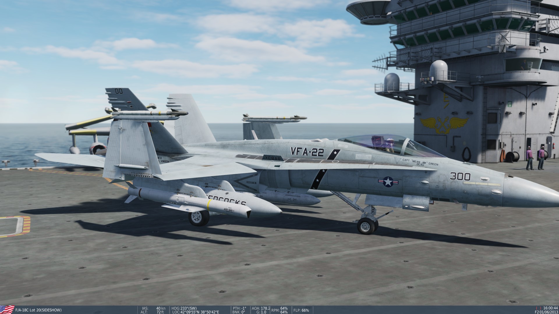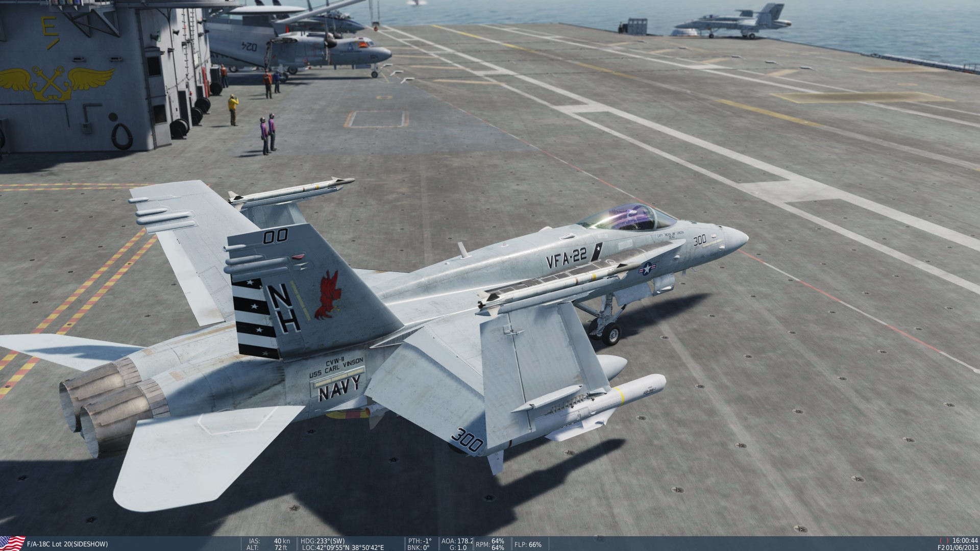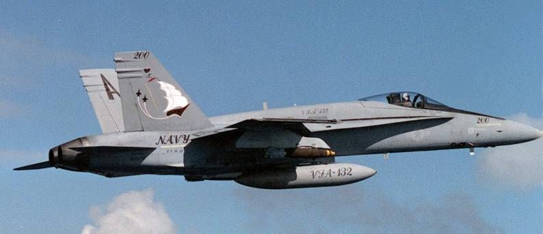 This livery is based on the VFA-132 Privateers. They were the first "VFA" squadron when they stood up at NAS Lemoore in 1984. They also took the F-18 to combat first in 1984 when they deployed HARMS and Shrikes over Libya. In their eight year existence, VFA-132 conducted numerous operations in the gulf. VFA-132 only flew "A" model Hornets, but I feel their impact on the program deserves recognition.