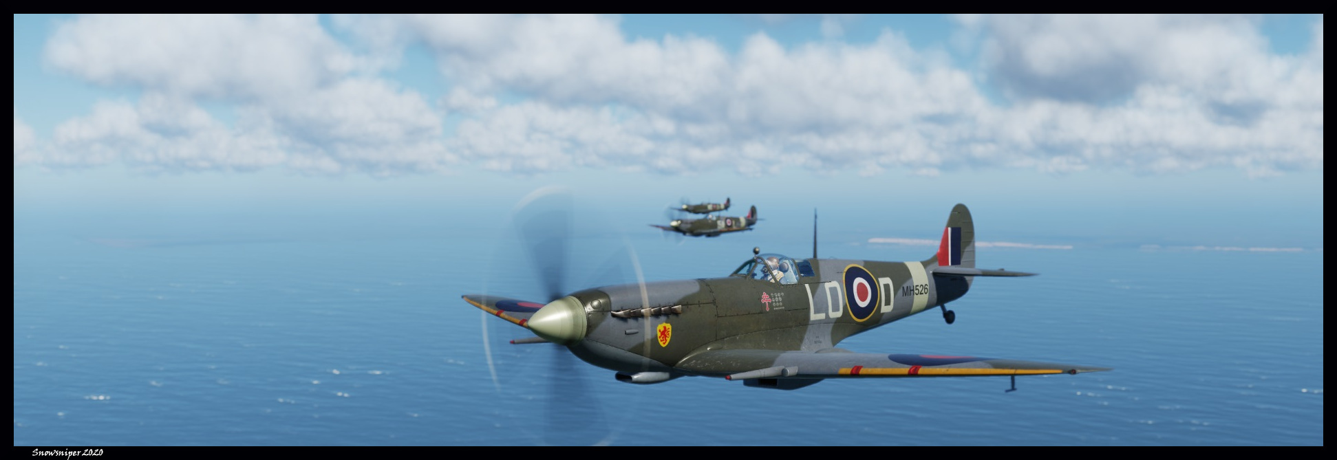 with two famous airplanes from squadron sq602, & sq329 flown by P.Clostermann and R. Lombaert in Spring 1944.