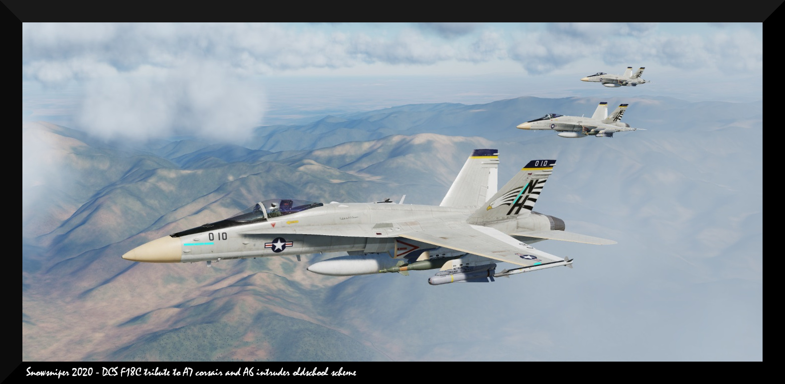 inspirated by, A7 corsair, and A6 intruder, i love oldschool USAAF scheme, this one don't feet historical for a F18hornet, but anyway, if gives a nice USAAF oldschool scheme touch.