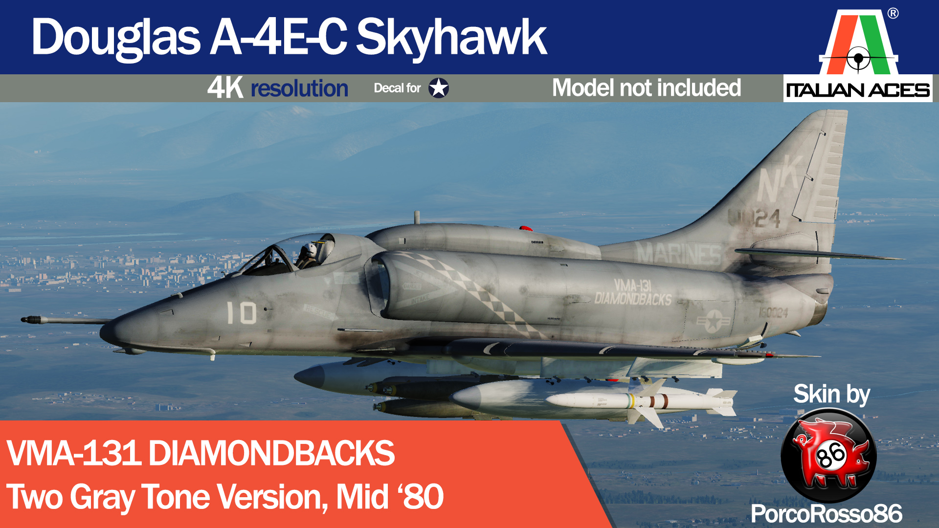 A very detailed and famous Argentinian A-4C Brigada IV livery used during the Falkland war for the A-4E-C mod. There are 3 different versions, no stripe, yellow stripe and blue stripe. Each livery is similar, but there are subtle differences. Check out the complimenting Argentinian A-4B Brigada V livery also uploaded on DCS. Enjoy.