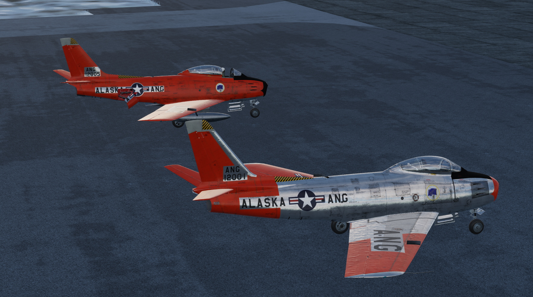 The liveries are semi-fictional because Alaskan ANG Sabres would have the BORT number on the wings too.