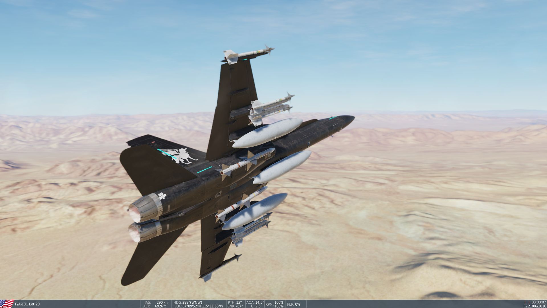 Satoru Kanzaki's F/A-18, appears only in the manga to my knowledge. The manga version was a pitch black F/A-18A (yes, A variant, the C one is used instead for obvious reasons) with virtually no other distinguishing features which is kind of boring, so this one is loosely based on some random model kit(?) interpretations of his livery.