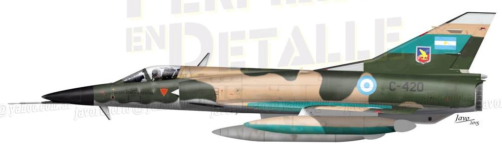 Skin for the Mirage F1 based on the Mirage V Dagger of the Argentine Air Force during de 1982 conflict, it corresponds to the Mirage V Registration C-420 of the 6 Fighter Group.