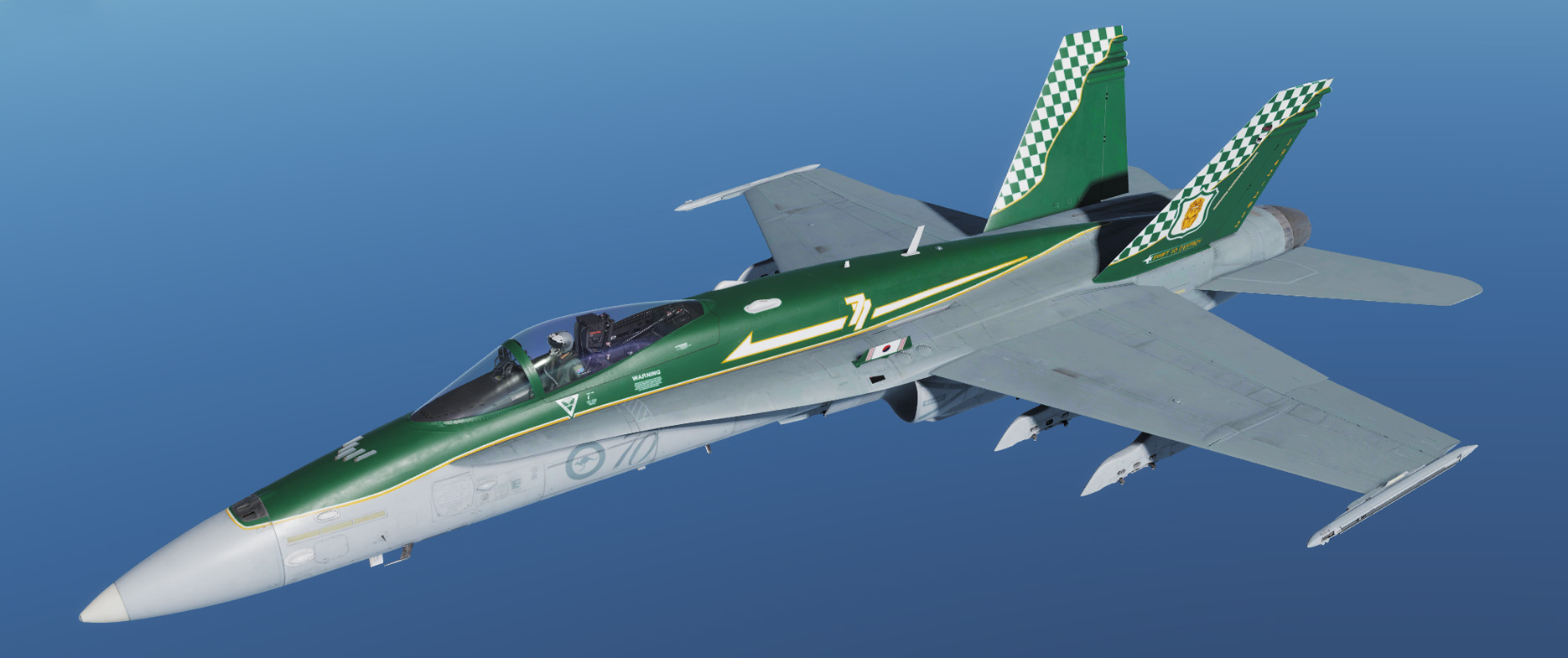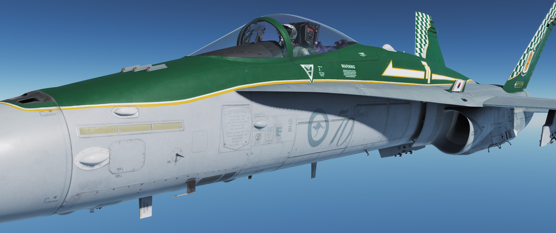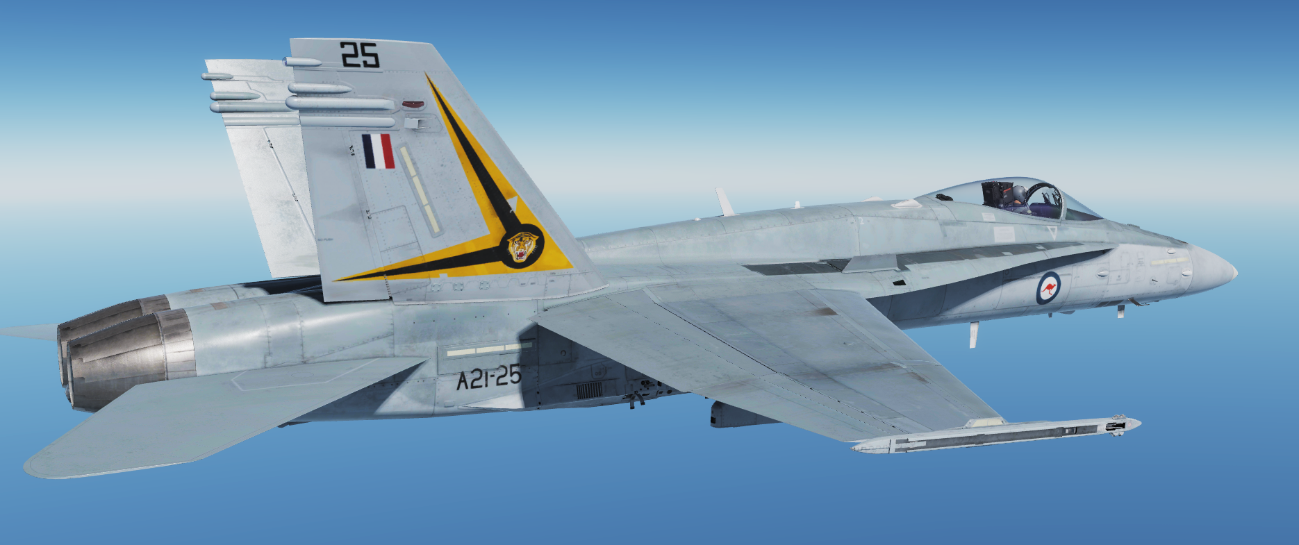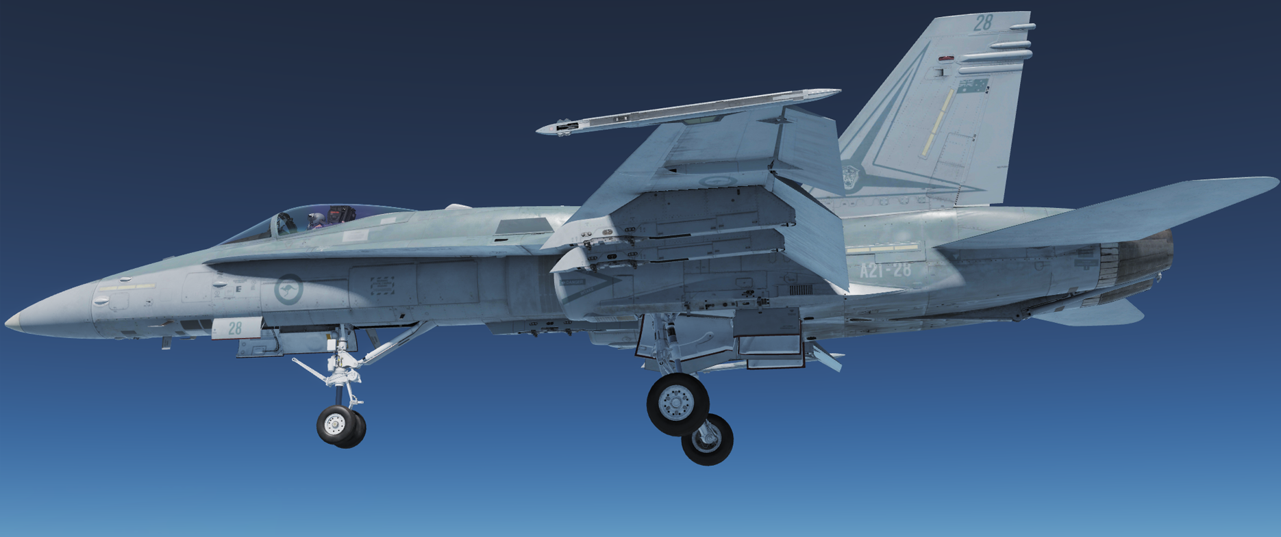 This pack includes three RAAF F/A-18A airframes: A21-32 ARDU test livery, A21-25 2OCU high visibility training livery, and A21-28 2OCU low visibility training livery. All textures are based exclusively on reference photographs of those specific aircraft, and are as close to the real deal as possible.