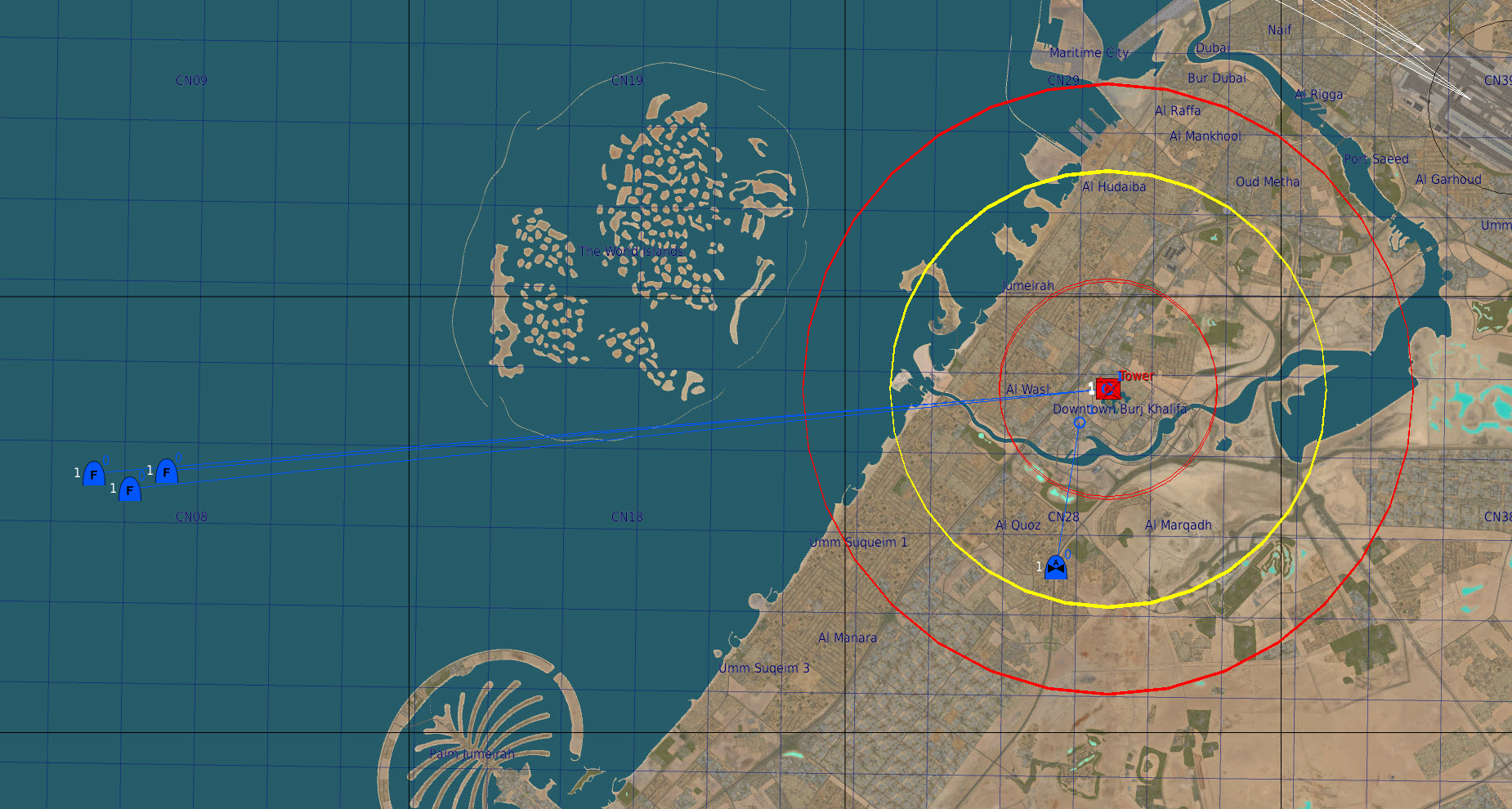 This flight has 2 F16's and a F18 that bomb the tower in Dubai.   4 bombs don't seem to be enough anymore so I made it a little exciting.