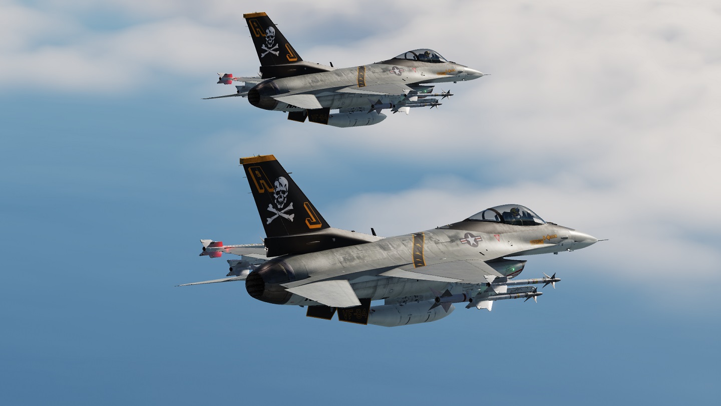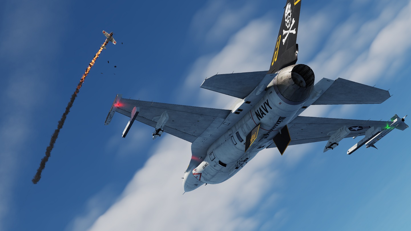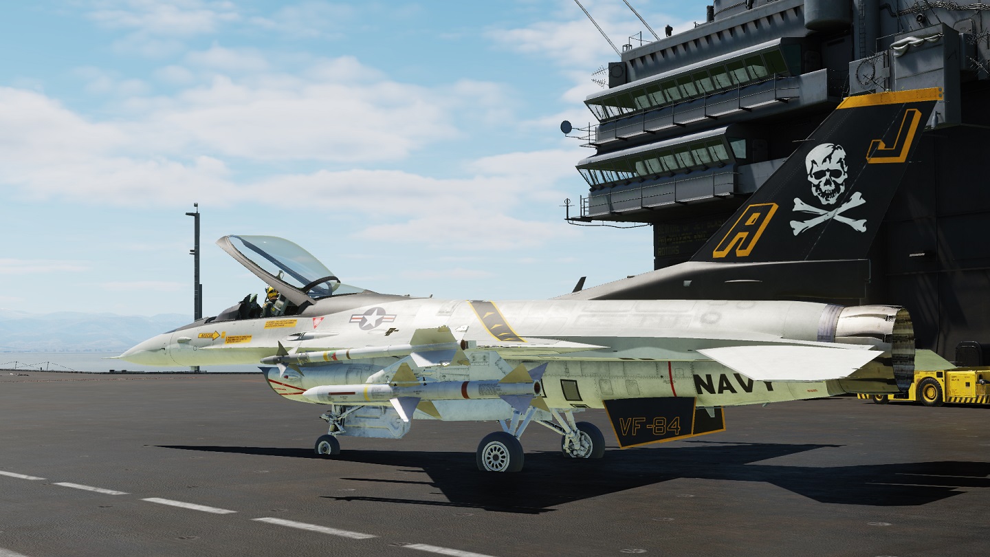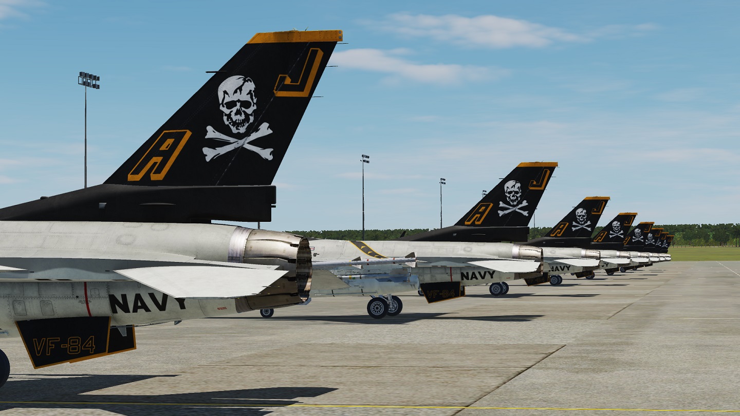 This skin pack is a collection of fictional skins representing the Sunday Punchers flying the AJS-37 Viggen, an aircraft with an all weather strike role similar to the A-6. The skins represent a CAG bird, a CO bird, and six line birds, each with separate MODEXes (side numbers) and accurate A-6 BuNos (serial numbers). The tactical grey pattern is based on the MIL-STD-2161A(AS) pattern for the F-4 Phantom, which has a fuselage shape similar to the AJS-37 Viggen. Each skin has a "normal" version and a weathered version. Weathered skins have a bleached effect as if the aircraft were heavily exposed to the sun for months on end. Normal skins include pilots with green flightsuits, while weathered skins include pilots with desert flightsuits. All organizational markings are based on VA-75 markings ca. 1991. This skin pack complements the VA-46 and VA-72 skin packs for the Su-25 and Su-25T, rounding out the attack aircraft in Carrier Air Wing 3 embarked on USS John F. Kennedy in 1990.