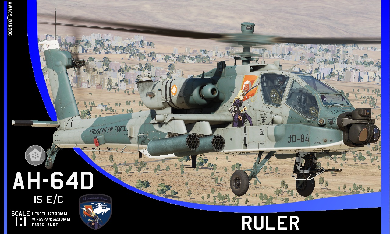 Ace Combat Erusean Air Force 15th Fighter Squadron 'Ruler" AH64D Livery. Ace Combat/Fate Anime Series livery.