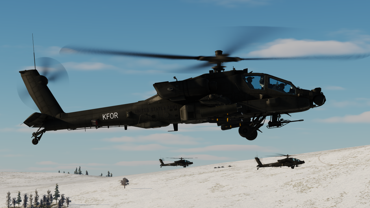 The Kosovo Force (KFOR) is a NATO-led international peacekeeping force in Kosovo. A few AH-64 Apache of the United States Army had been deployed to provide superior firepower