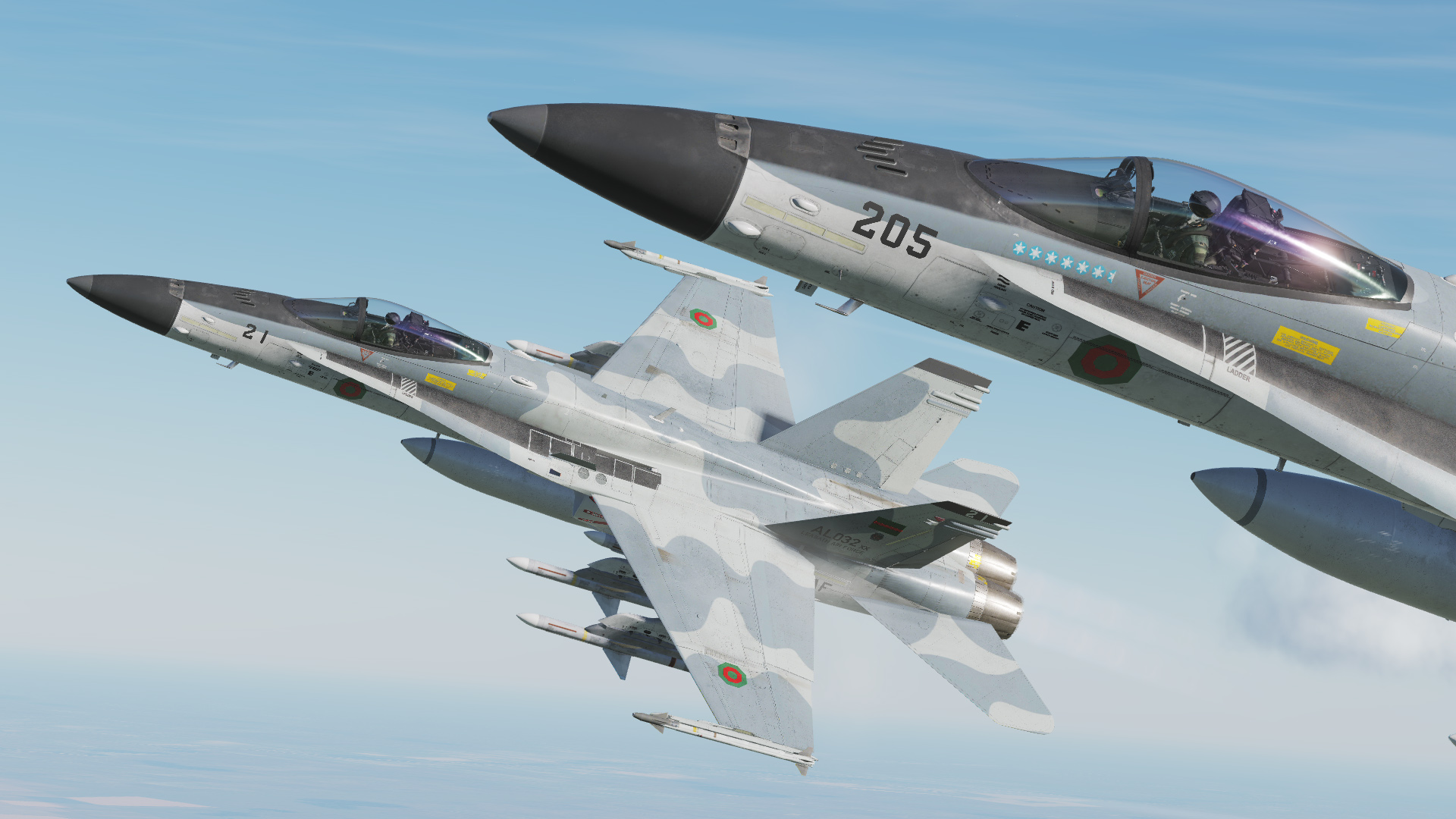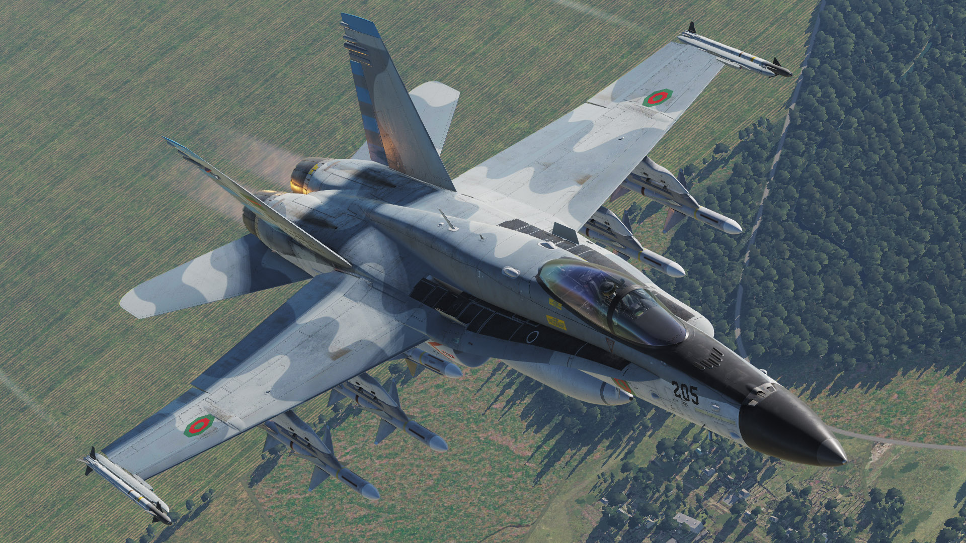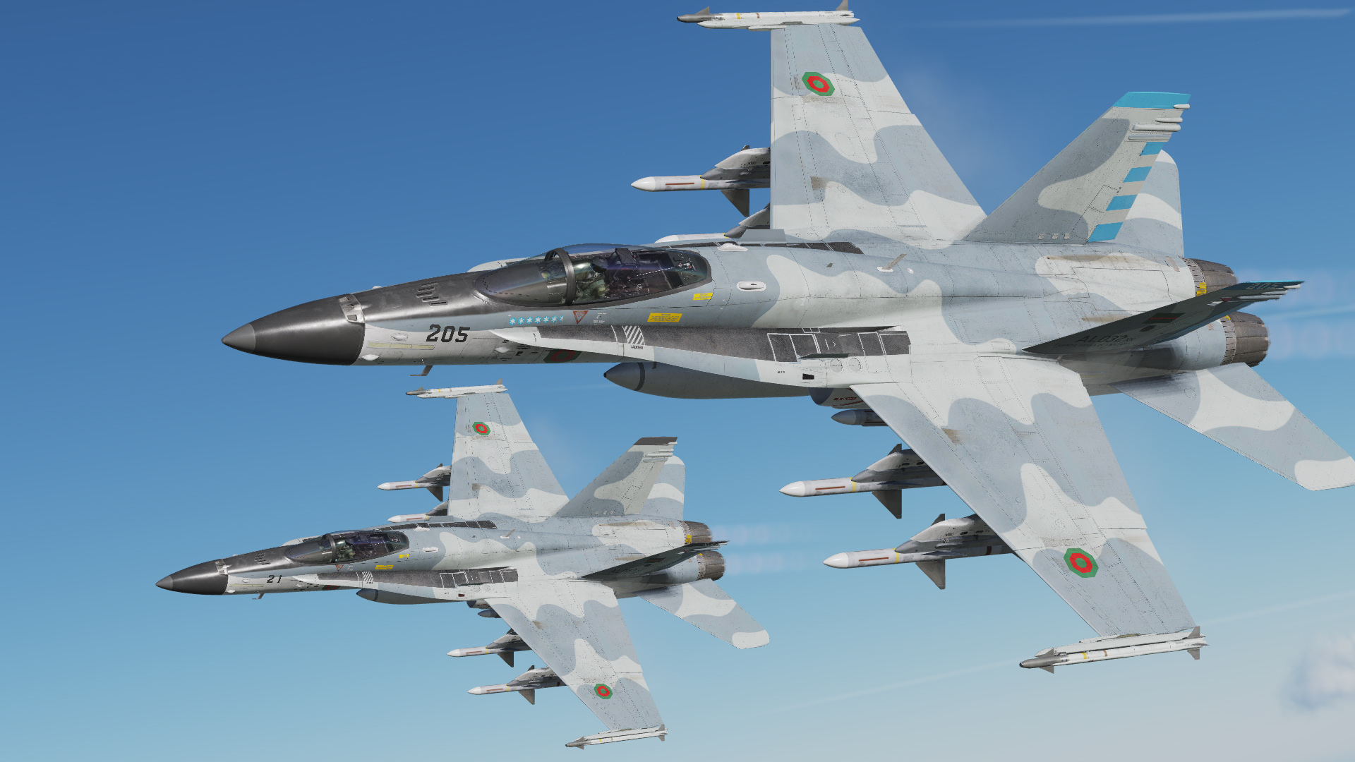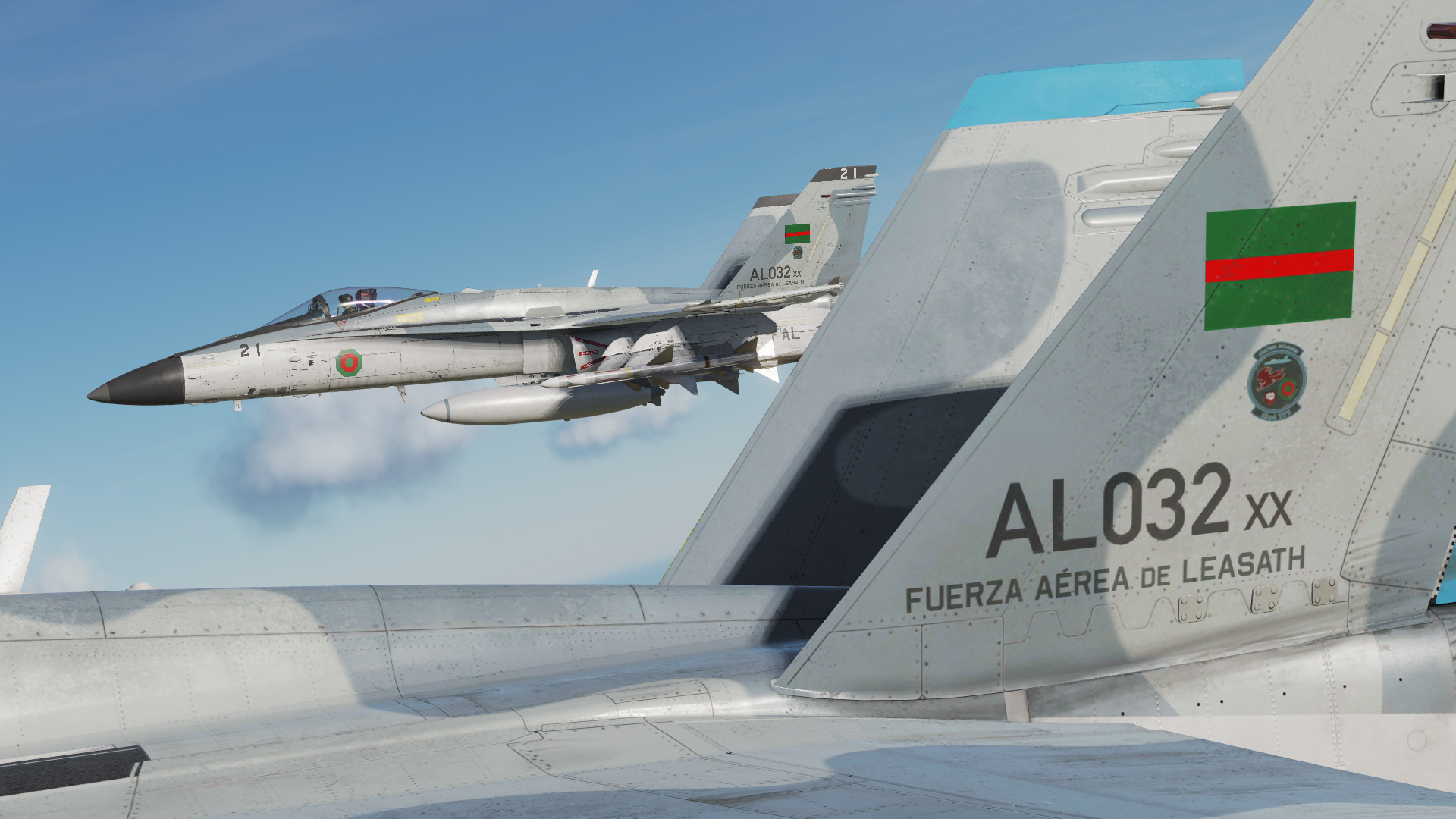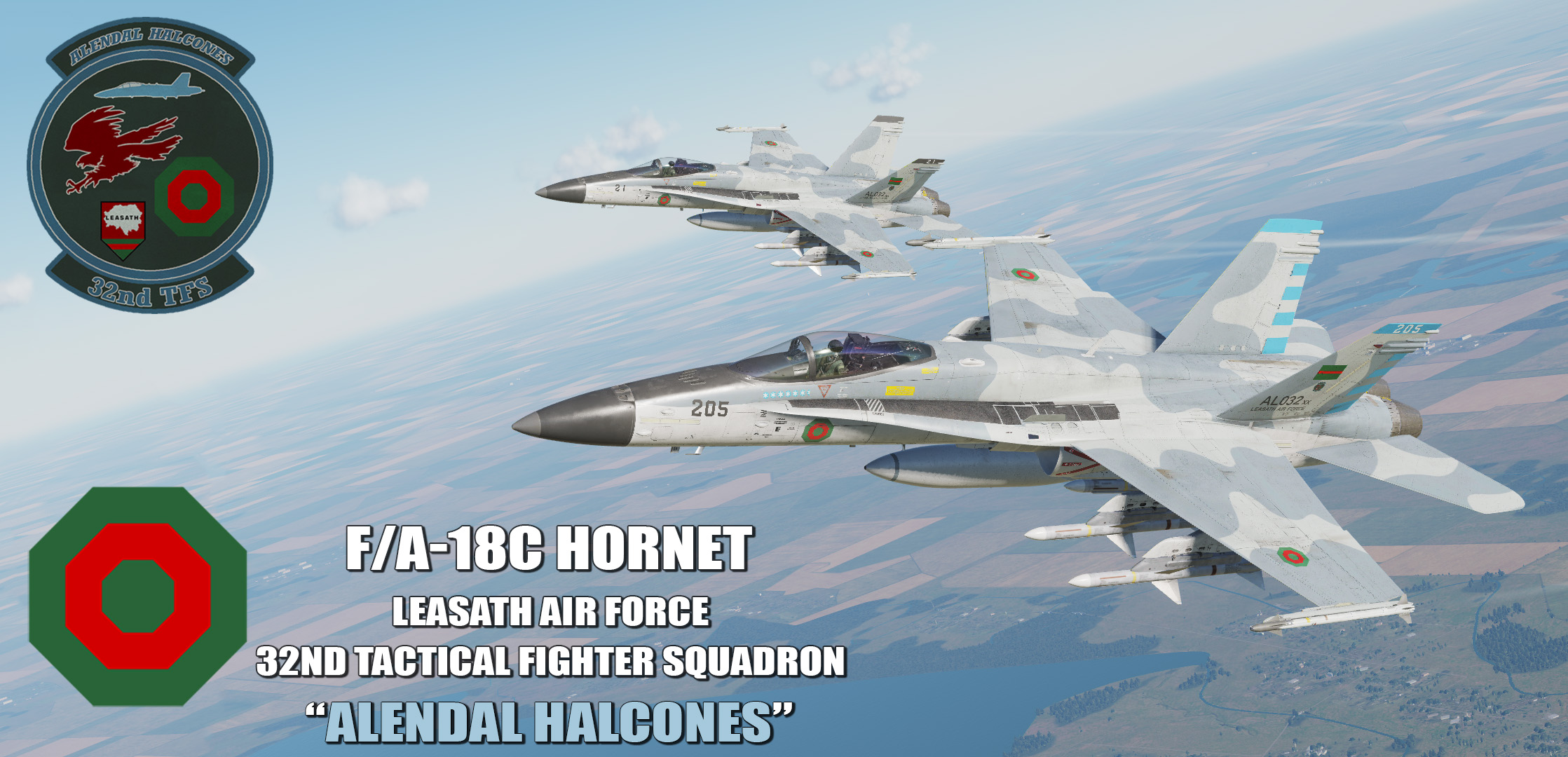 F/A-18C Hornet of the Leasath Air Force 32nd T.F.S "Alendal Halcones". There are two versions of this livery, one in English and the other in Spanish.