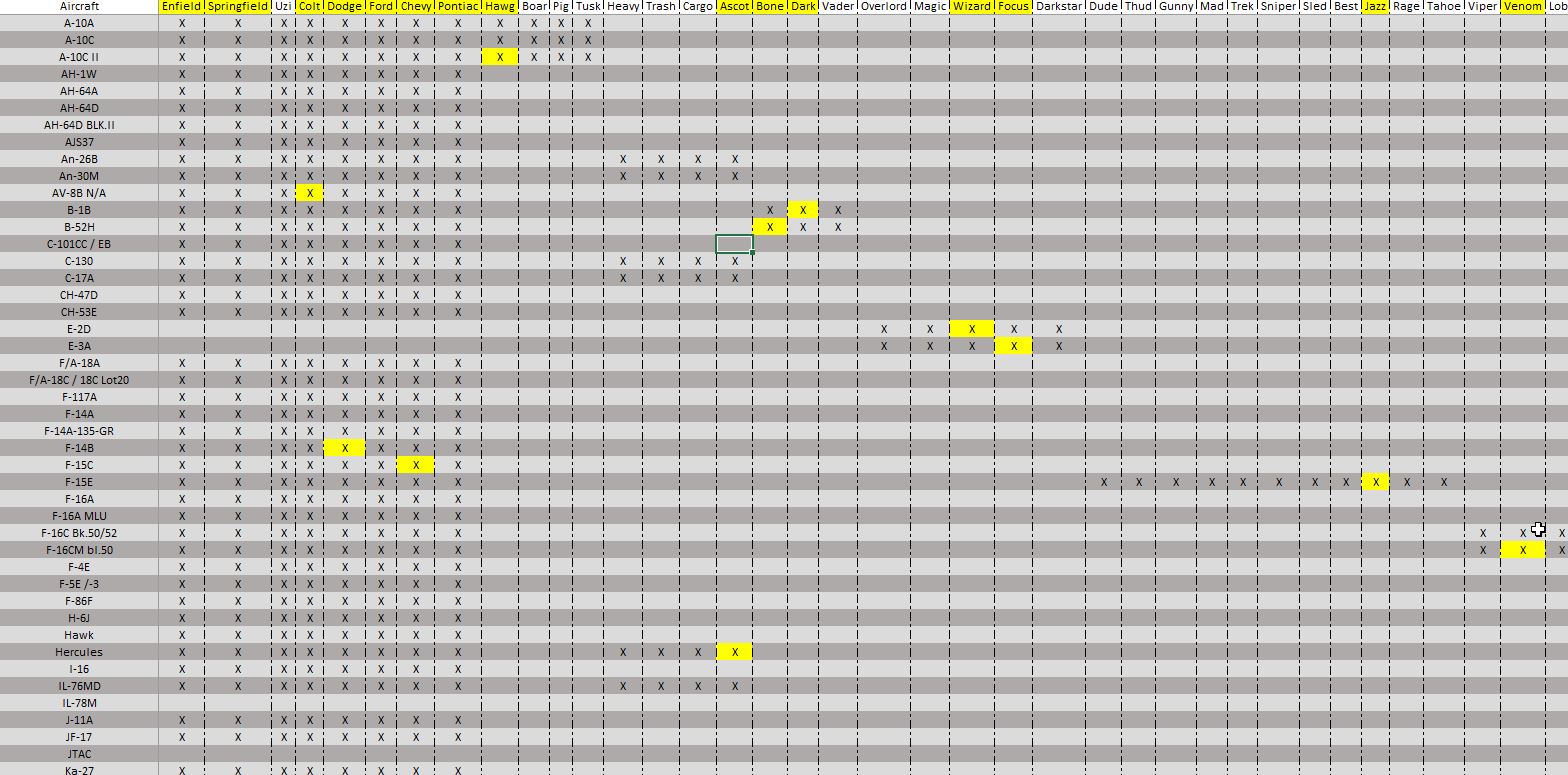 Quick excel and pdf files with all the callsigns available in the ME per aircraft