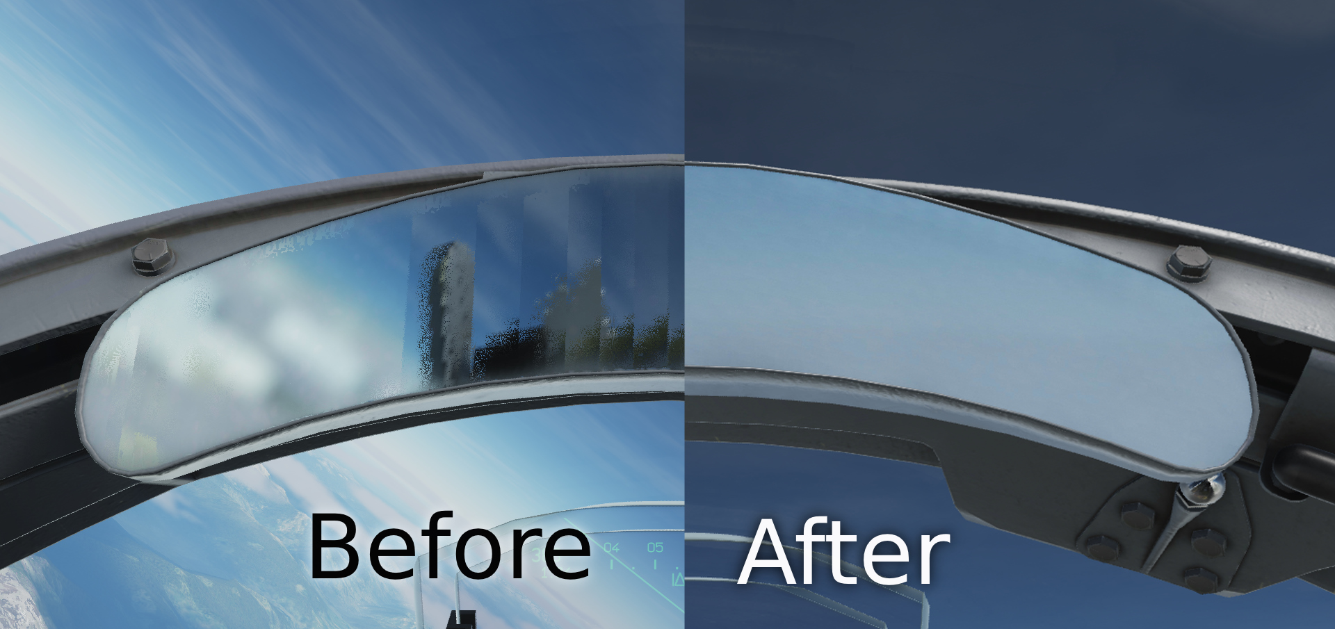 This mod replaces the awful, pixelated Mirage-2000 cockpit mirror with a non-reflective one.