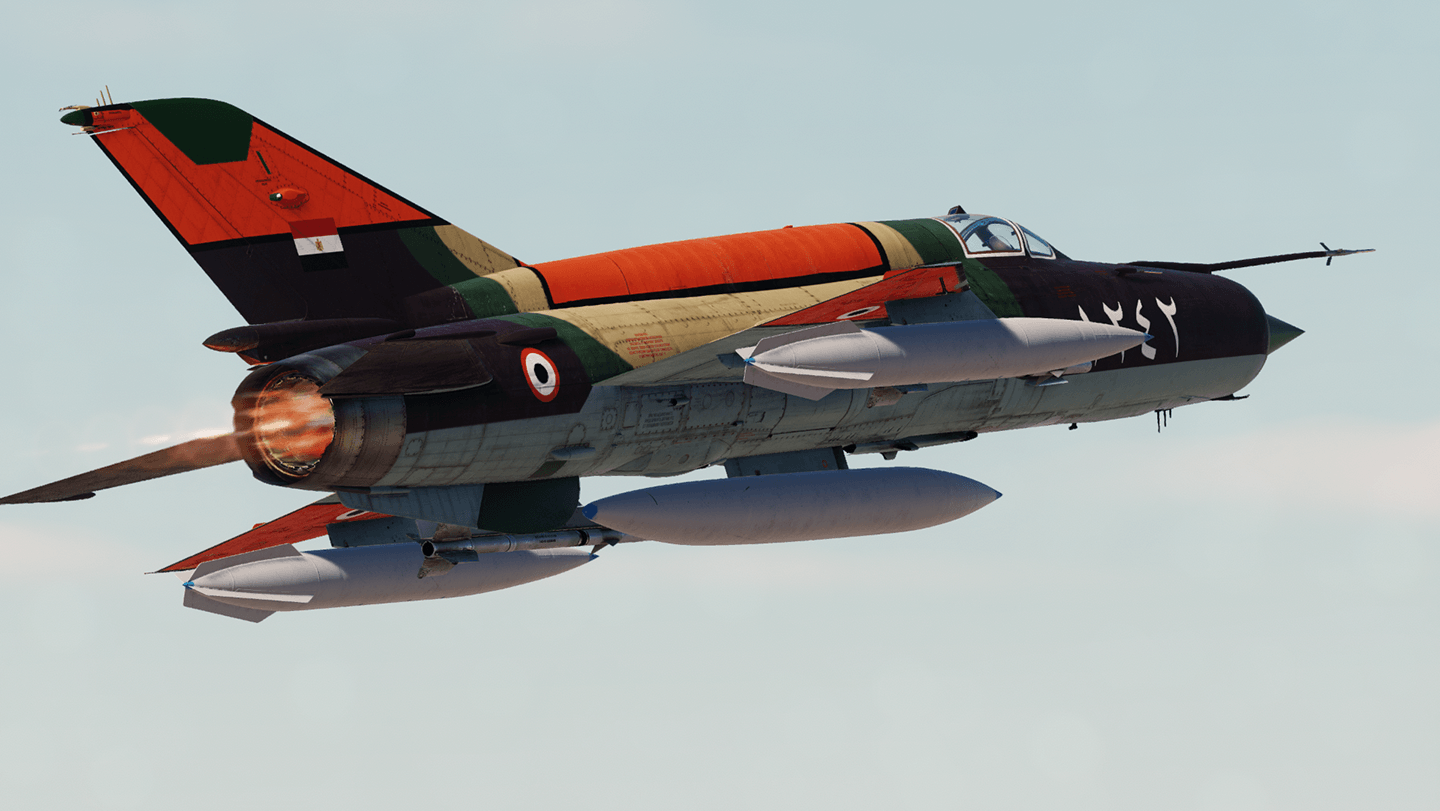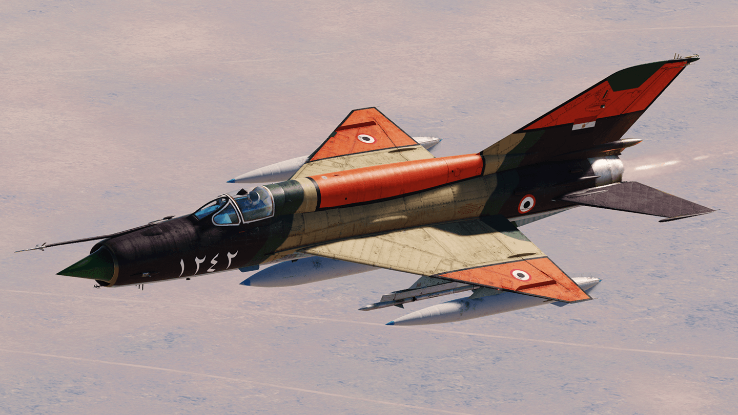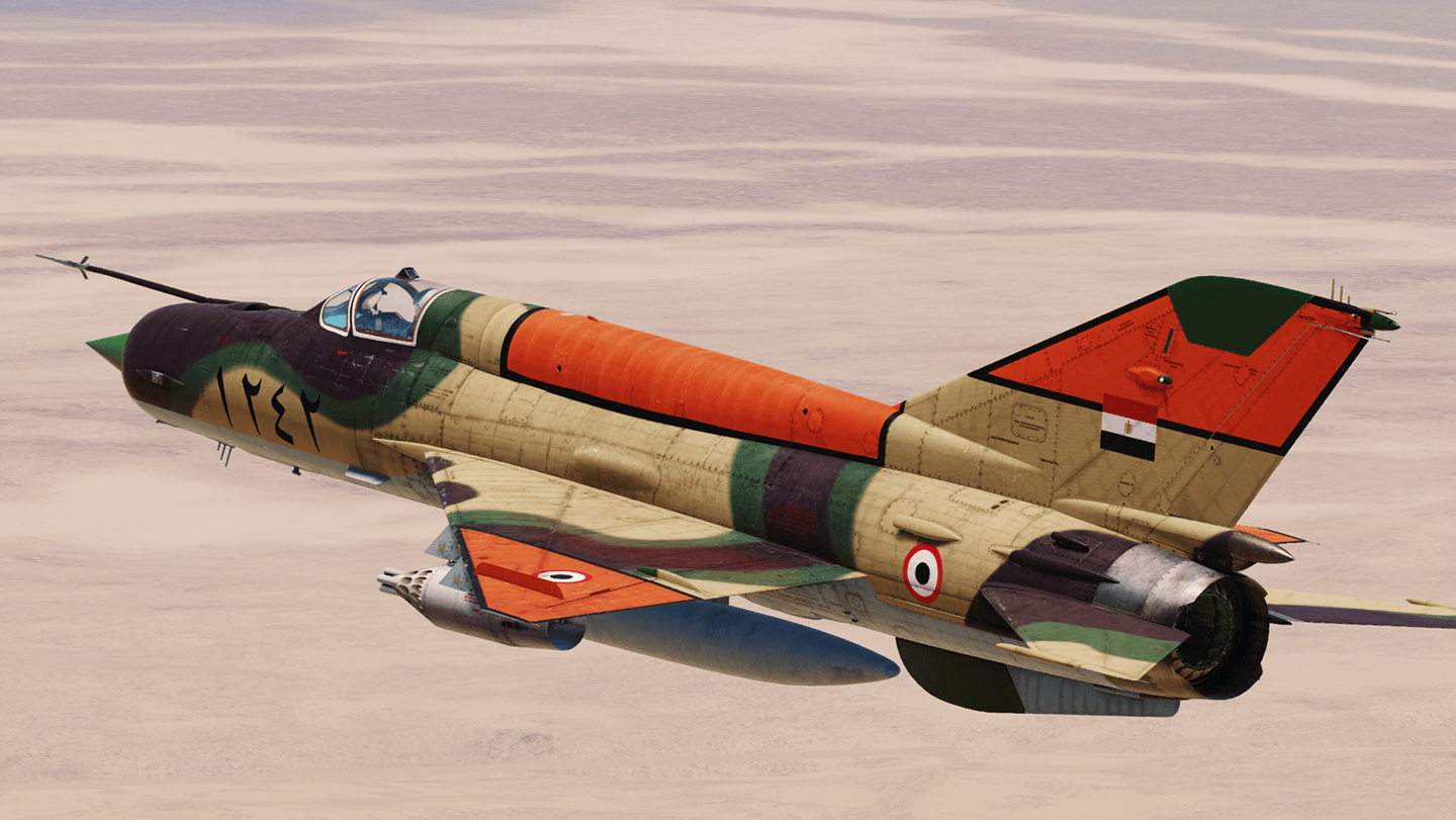 This is the first pack in a series intended to represent the Egyptian Airforce MiG-21s throughout their decades of service. This pack contains two liveries featuring Red Identification markers and Brown-Green-Tan camos used by the EAF after 1973 to today.