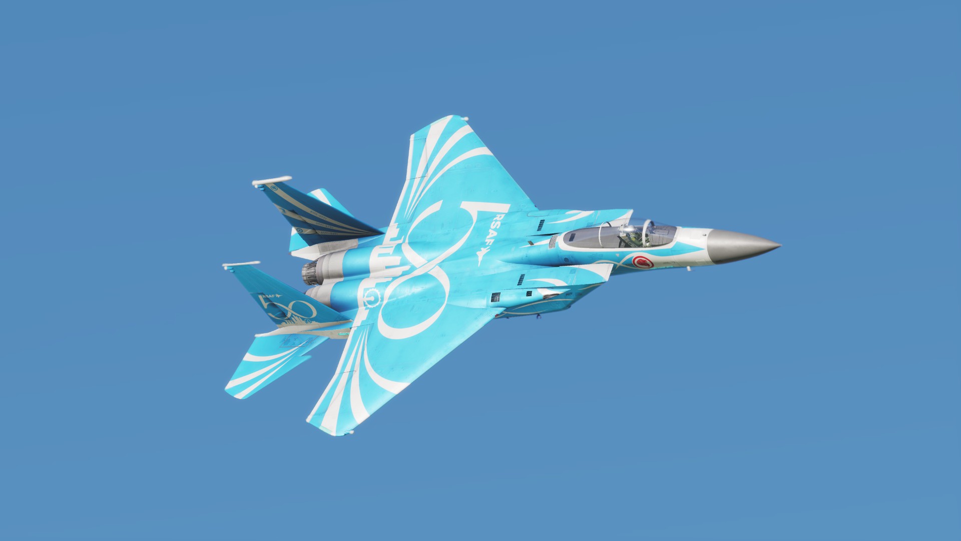 Republic of Singapore Air Force Special Livery skin for DCS World F-15C. 50th Anniversary year of Republic of Singapore Air Force paint scheme. First present in Singapore Airshow 2018