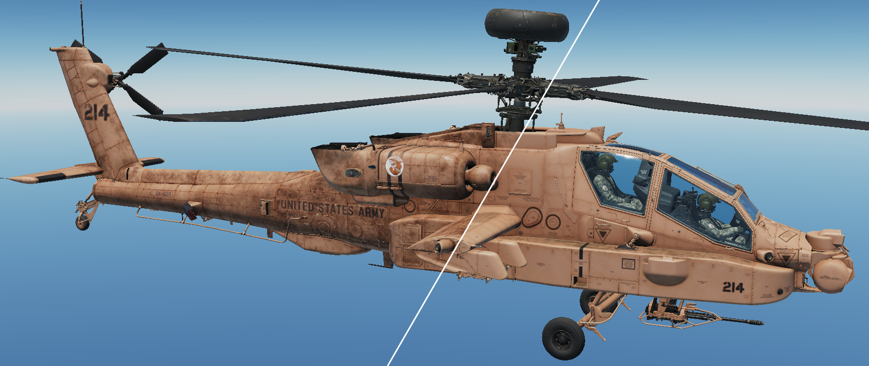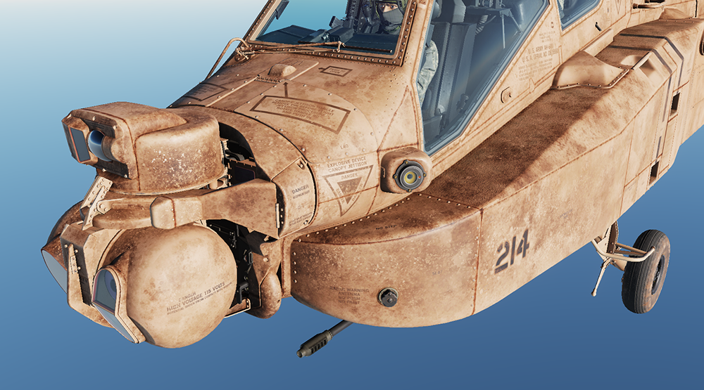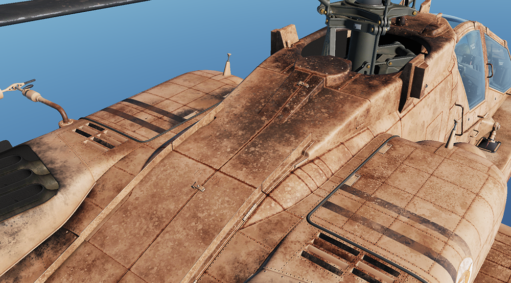 I present to you my livery pack for the 103RD Aviation Sand Sharks, a fictitious Apache squadron, operating in Syria and the Persian Gulf. As a case study, I wanted to see if I could use plastic scale model painting techniques, like pre- and post- shading, airbrushing, weathering, chipping and rust, grime, oil and grease streaking, etc., in a digital world, to create something one might consider hyper- or photo-realistic. I approached it from the perspective of a scale model builder, not a 3D texture painter, and had to come up with some clever ways of reproducing those techniques I have been using for years in the real world in a convincing way.