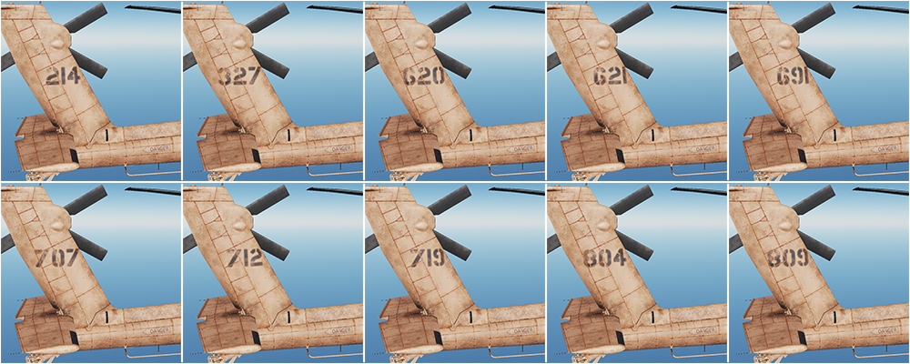 This skin pack contains the efforts of my 90+ hours hand painting virtually every surface of this bird (including rocket and missile pods, as well as the 230 gal fuel tank). There are 10 different versions, in both clean and dirty for 20 total. I hope you enjoy them!