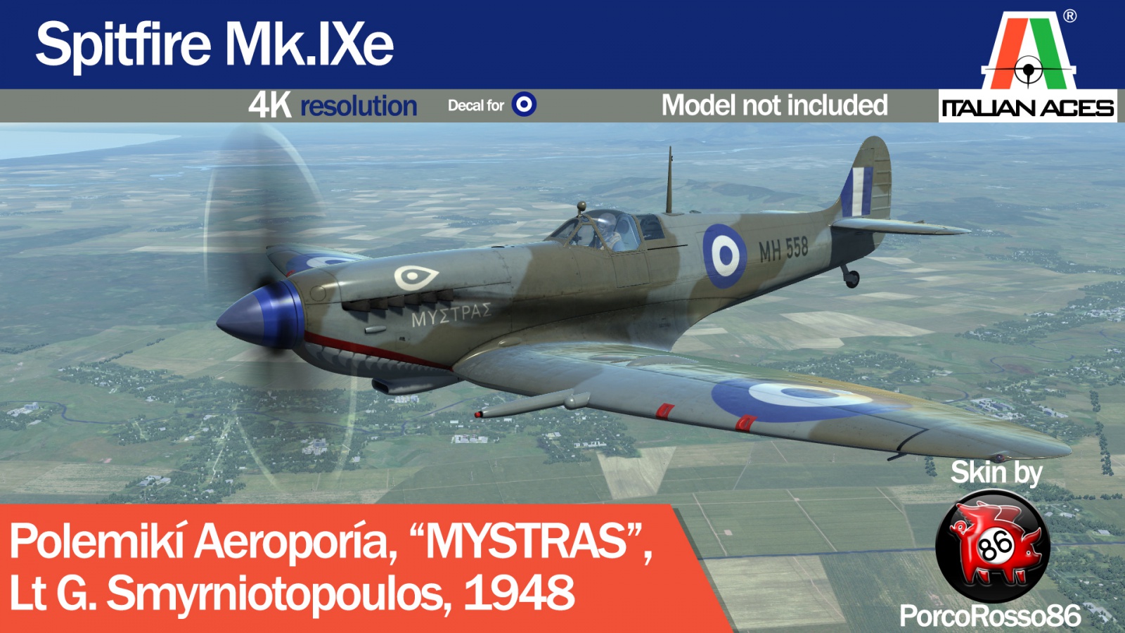 Skin for the DCS Spitfire Mk.IXe of the HAF Spitfire MYSTRAS, owned by Lt Georgios Smyrniotopoulos, 1948