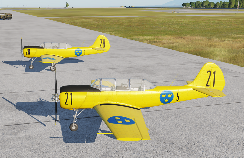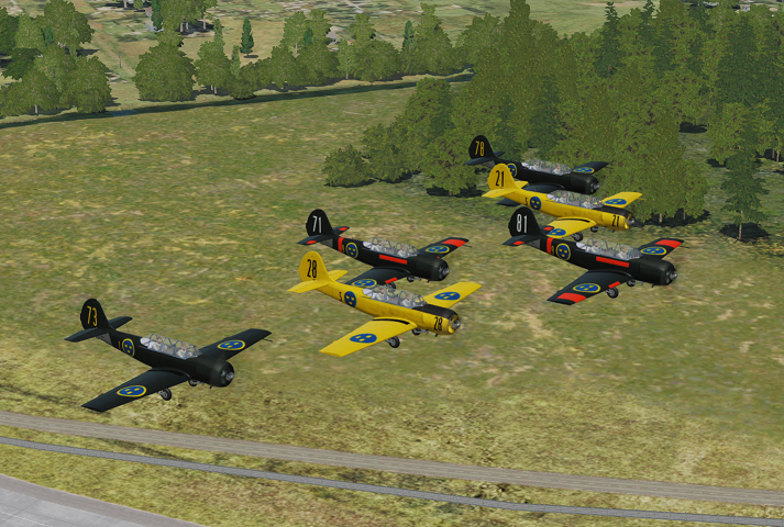 A pack of six swedish skins for the Yak-52. The skins are based on real aircraft from three different swedish bases, F1 Västerås, F5 Ljungbyhed and F9 Säve.