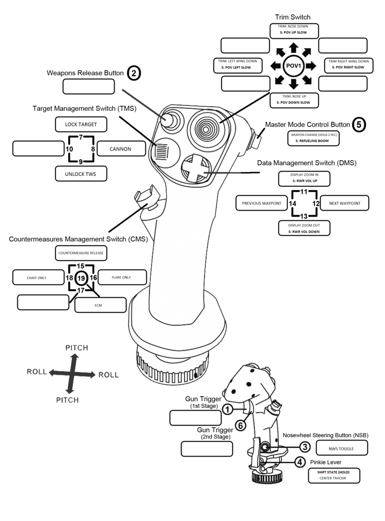 This is a fillable PDF keybinding template for anyone with a mixed setup like I have. Warthog Grip, TWCS Throttle, TFRP Rudder Pedals
