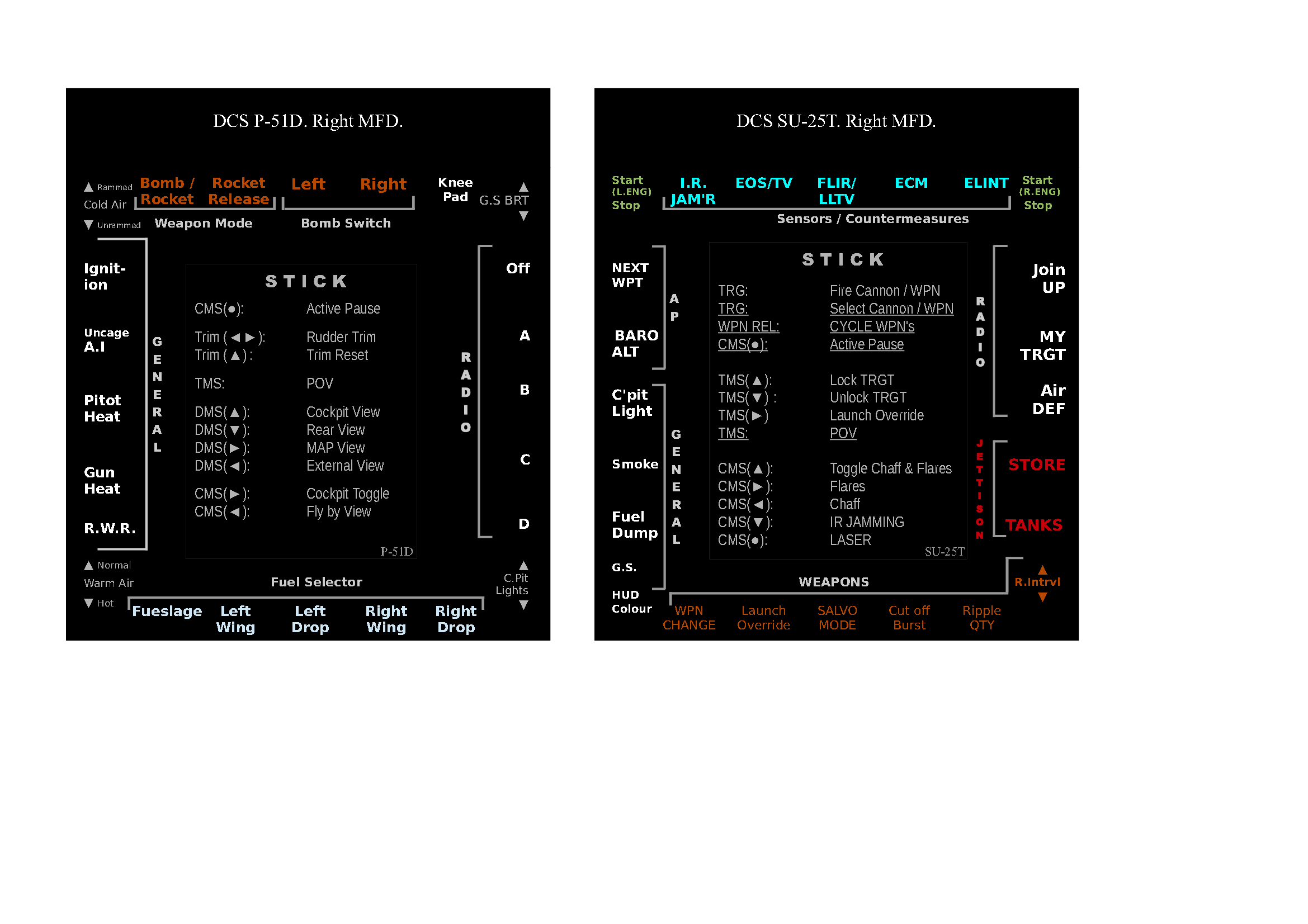 Thrustmaster Warthog Profile for SU-25T utilising commands for the MFD's and HOTAS controls. For installation instruction see attached readme file.