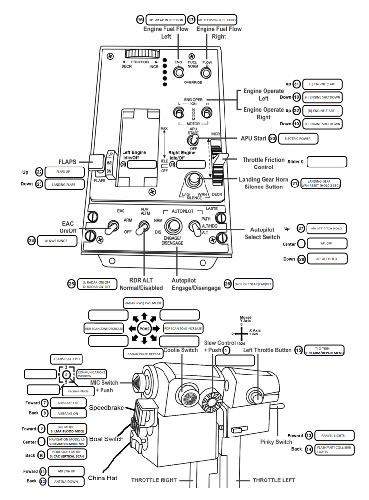 F-18C Thrustmaster Warthog Flight Controls Guide based on NATOPS manual and YouTube video by Jar.